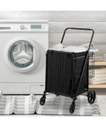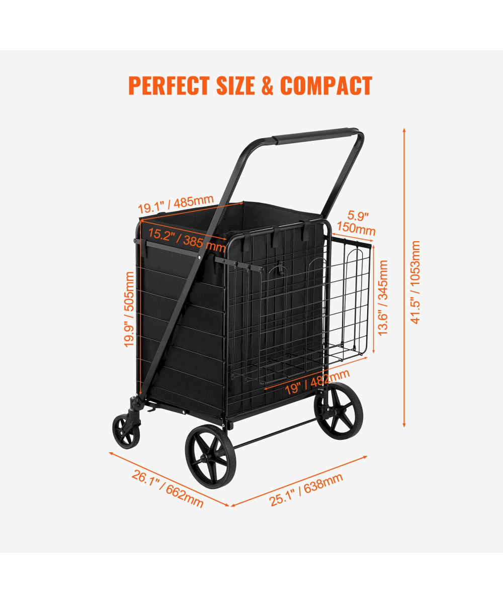 Zusätzlicher hinterer Korb: Der Einkaufswagen ist mit einem vorderen Korb und einem zusätzlichen hinteren Korb ausgestattet und bietet Ihnen ausreichend Stauraum (≥3 cu.ft. Platz). Der vordere große Korb hat die Maße 19,1 x 15,2 x 19,9 Zoll (485 x 386 x 505 mm), der hintere Korb hat die Maße 19 x 5,9 x 13,6 Zoll (483 x 150 x 345 mm). Im hinteren Korb können Brieftaschen oder andere persönliche Gegenstände verstaut werden, sodass persönliche Gegenstände während des Einkaufs jederzeit geschützt aufbewahrt werden können.