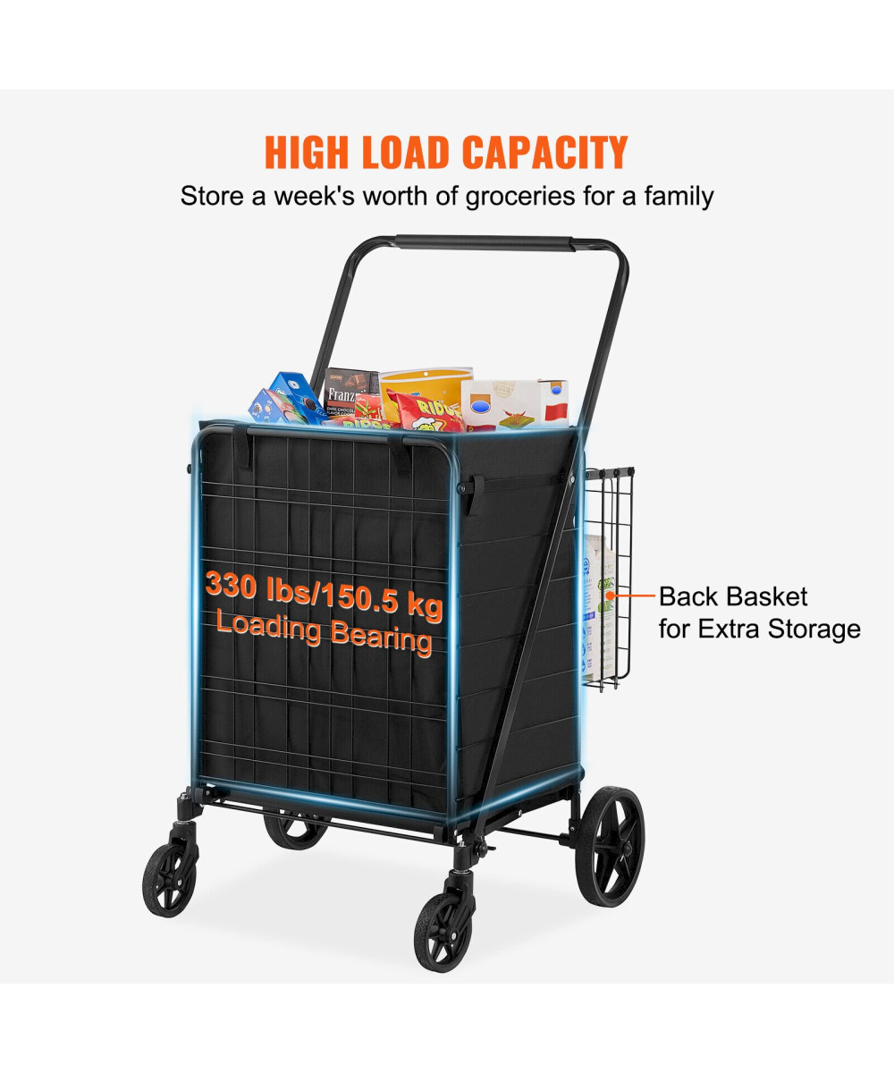 VEVOR Einkaufstrolley Klappbar schwarz 150,5 kg Belastbar Einkaufsroller Handwagen