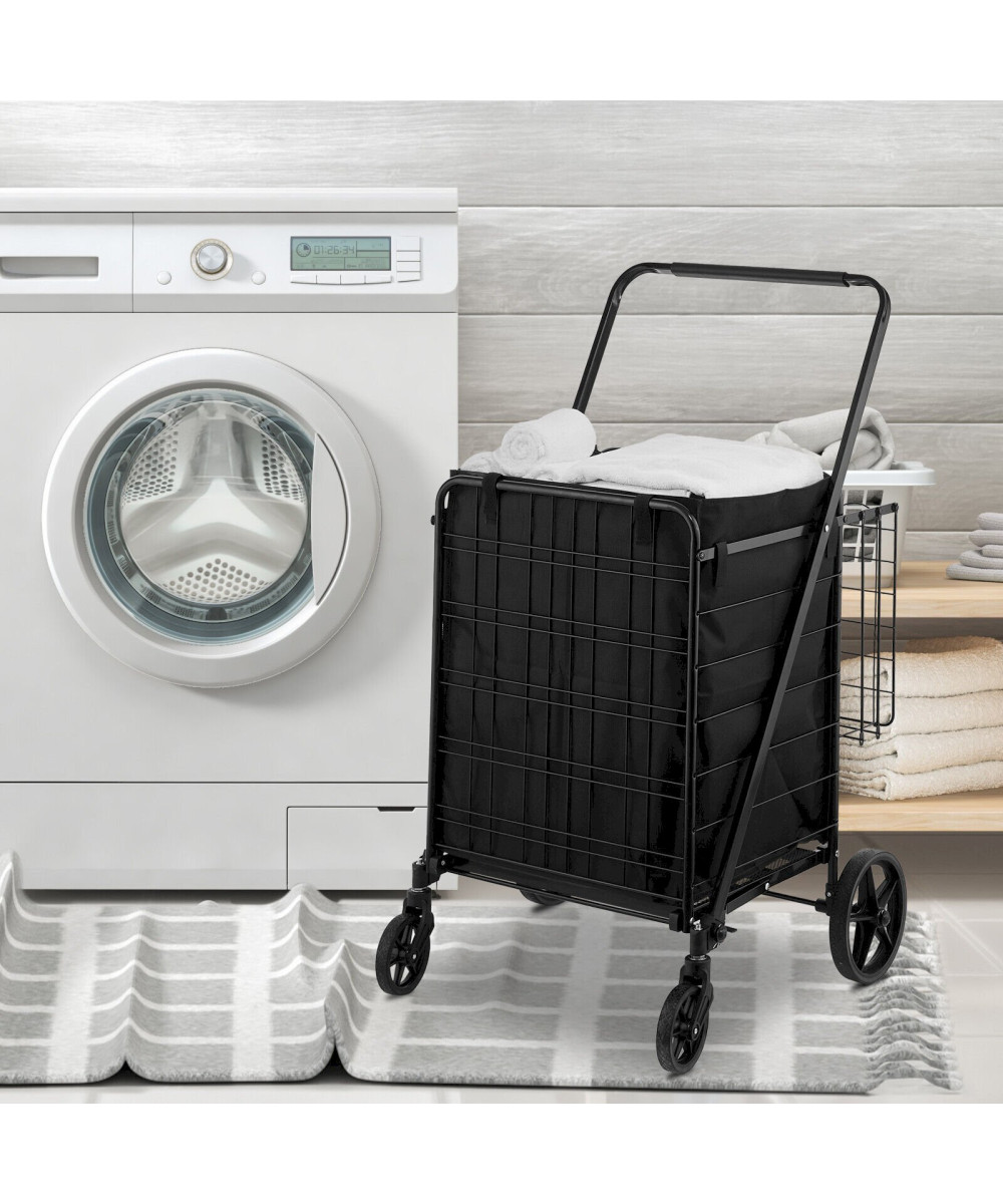 Vielseitiger & problemloser Zusammenbau: Unser Einkaufswagen ist für den mühelosen Transport einer Vielzahl von Artikeln konzipiert, darunter Wäsche, Lebensmittel, Campingausrüstung und mehr. Der Zusammenbau ist ein Kinderspiel, da eine Gebrauchsanleitung und alle benötigten Befestigungsmaterialien im Lieferumfang enthalten sind. Einfach den vormontierten Korpus aufklappen und die Räder montieren.