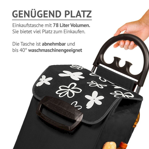 Kiley Einkaufstrolley XXL in schwarz mit Blumenmuster 78 Liter & Seitentaschen große Räder