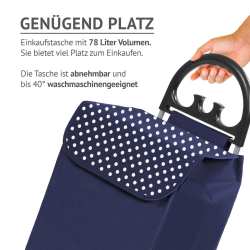 XXL Einkaufstrolley KILEY blau 78L >50kg - ExtraGoße leise abnehmbare GummiRäder
