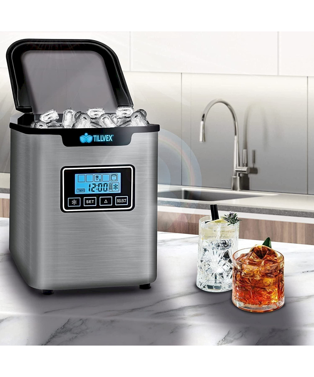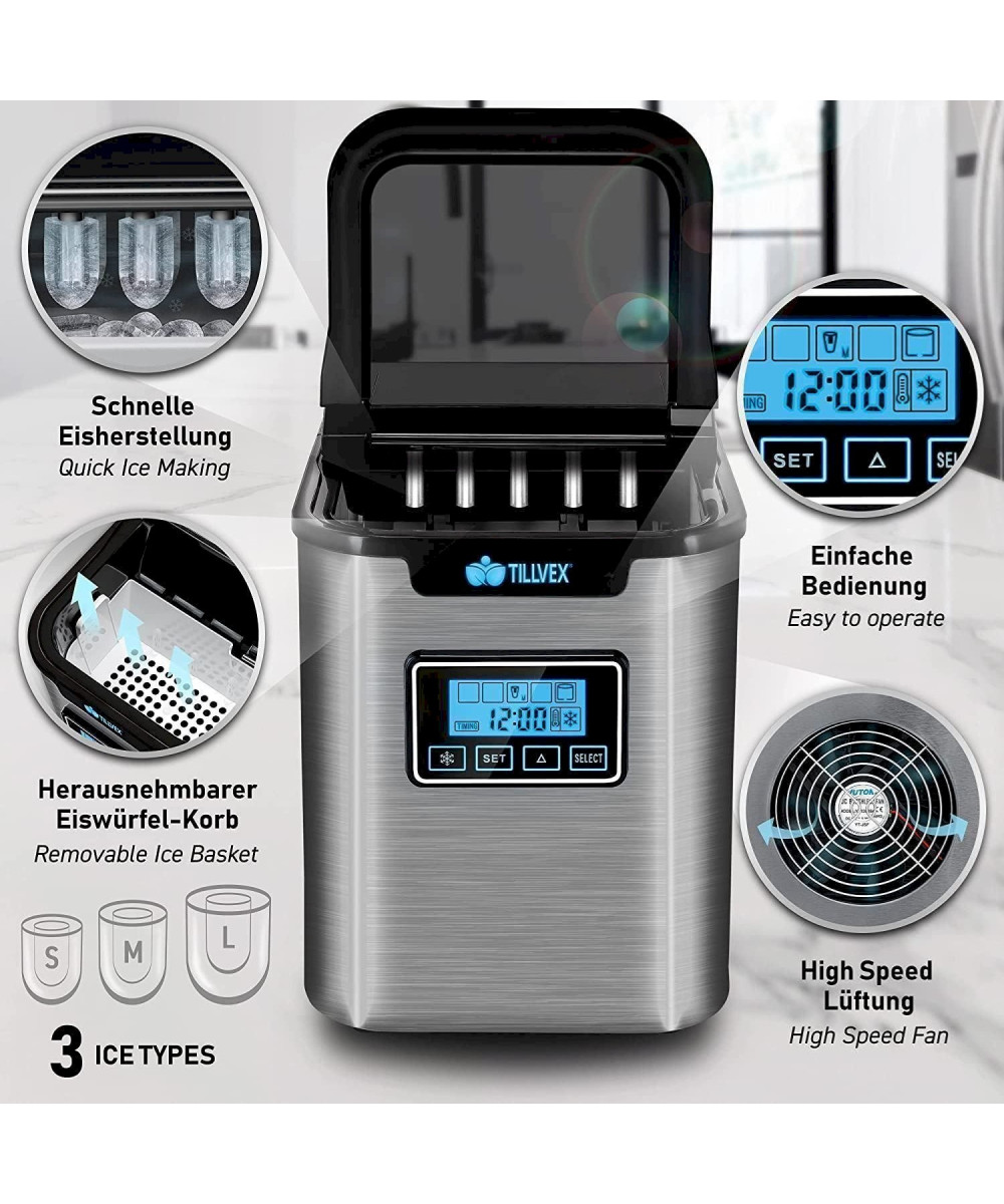 tillvex® Edelstahl Eiswürfelmaschine Icemaker 2,2L silber