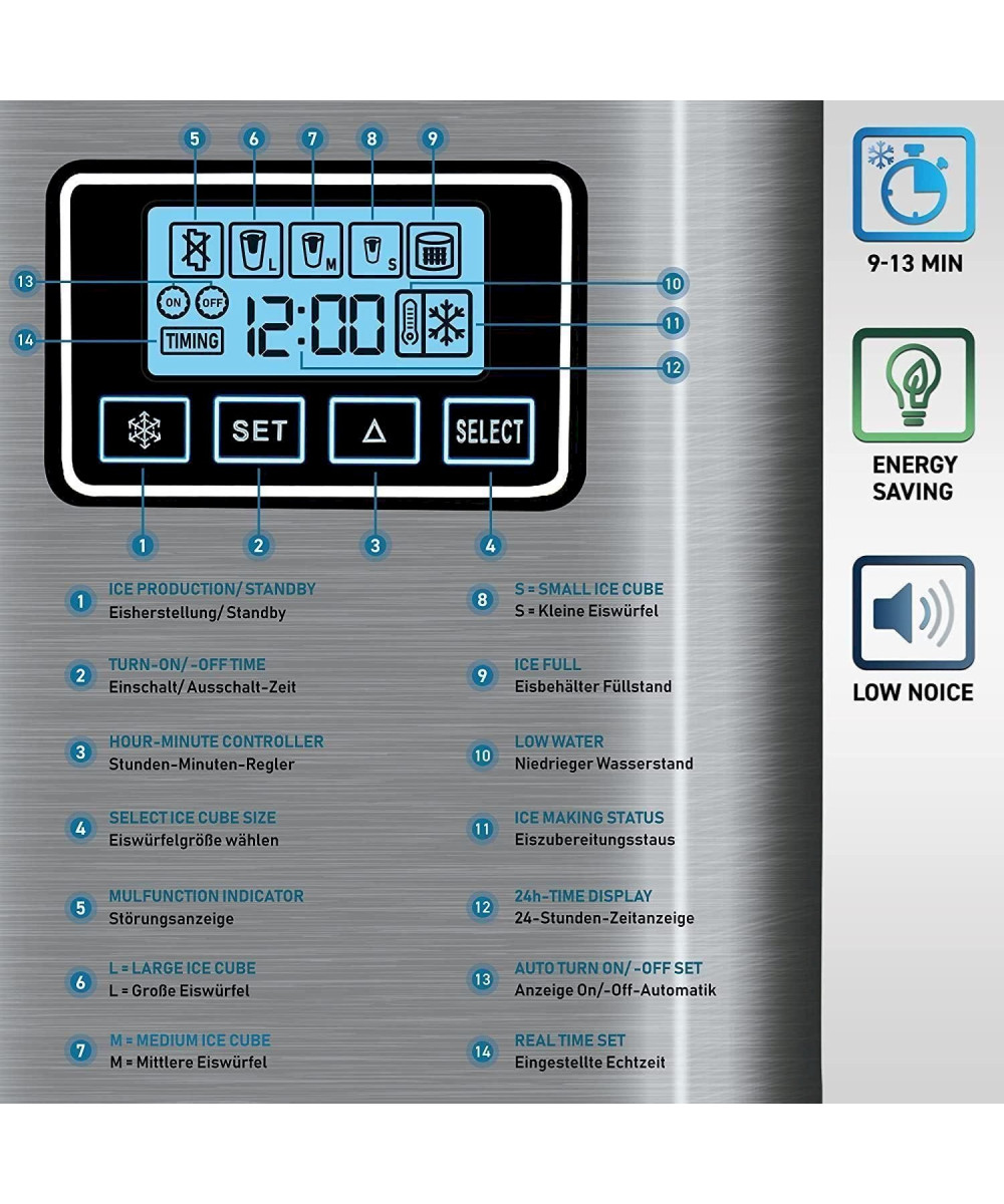 - Kapazität für Eisherstellung: 12-15 kg / 24 h