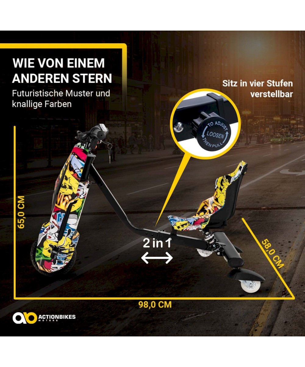 Actionbikes Elektro-Drift-Trike Driftscooter für Kinder Grafit Gelb