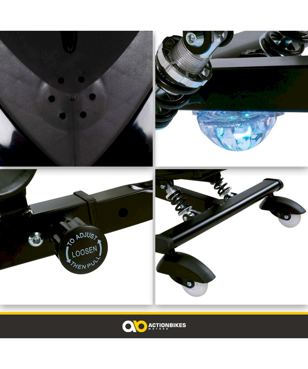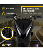 Kinder stecken voller Abenteuerlust und Entdeckergeist: Das Elektro-Drift-Trike von Actionbikes liefert genau dafür den perfekten Stoff! Spaßige Stunden und eindrucksvolle Tricks sind garantiert. Denn die speziellen 360°-Rollen am Trike ermöglichen rasante Drifts. Mit dem 250-Watt-Motor erreicht der Drift-Scooter eine Geschwindigkeit von bis zu 15 km/h. Aber keine Sorge – die Sicherheit Ihrer Sprösslinge haben Sie trotzdem stets im Blick: Denn mithilfe des Drosselschalters bestimmen Sie die Geschwindigkeit des Elektro-Drift-Trikes für Kinder. Und auch eine Hupe sowie eine Vorderbremse sind am Drift-Trike vorhanden. Dem sicheren Spaß steht also nichts mehr im Wege: Mit blinkenden LED-Rollen, leuchtender Front, peppiger Musik und auffälligem Design lässt der Elektro-Drift-Scooter Kinderherzen höherschlagen.