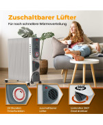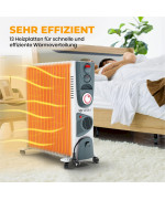 VESKA Ölradiator 2900W Elektro Heizkörper Schwarz Mobile Elektroheizung