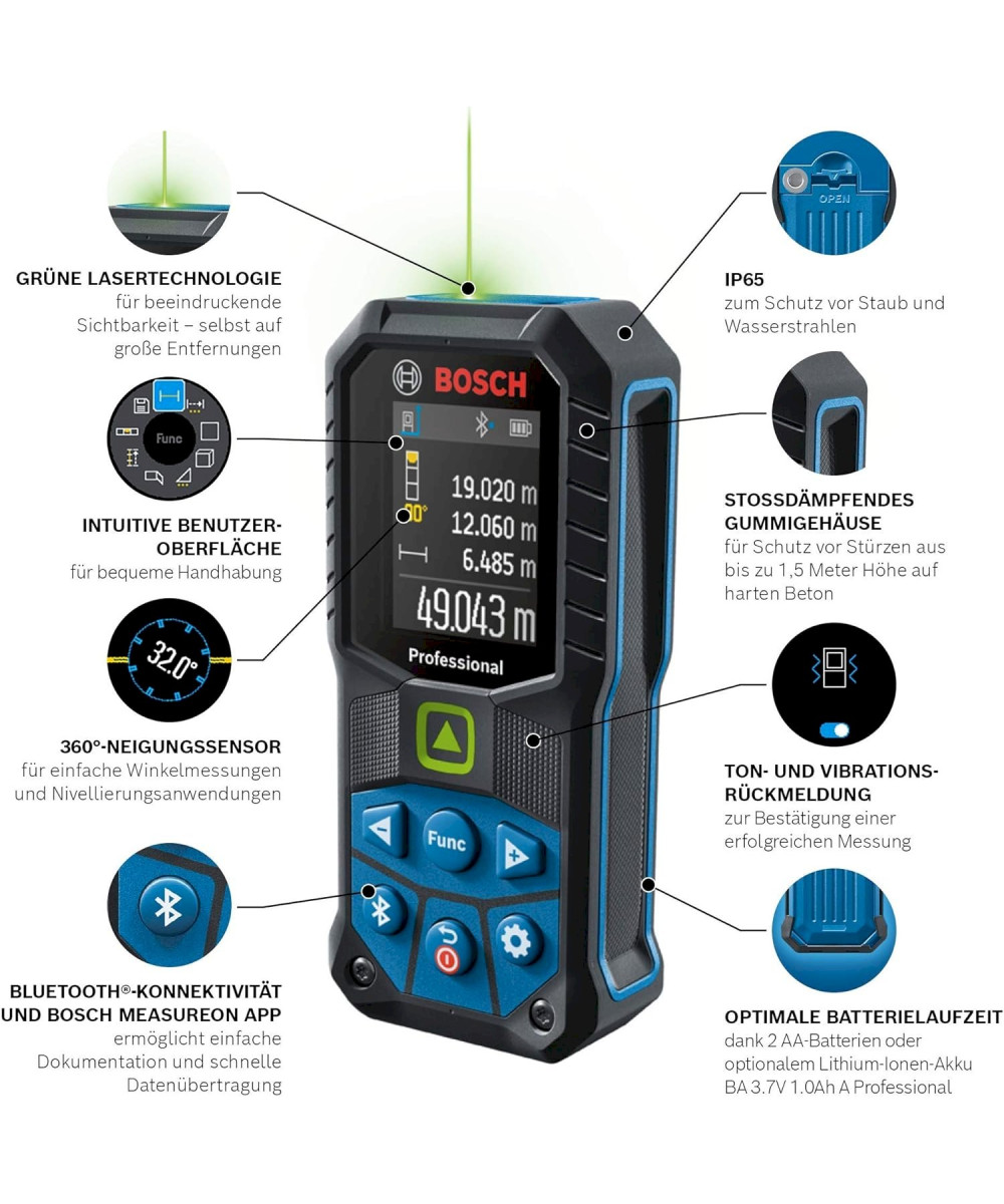 Das Gerät gibt sowohl ein Akustik- als auch Vibrationssignal zur Bestätigung einer erfolgreichen Messung und bietet eine längere Akkulaufzeit (im Vergleich zum Vorgänger GLM 50 C Professional).