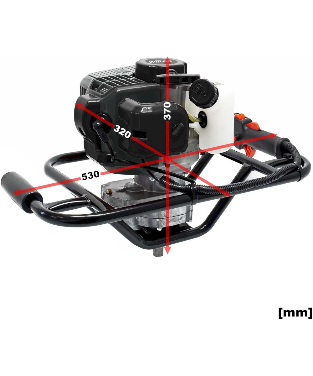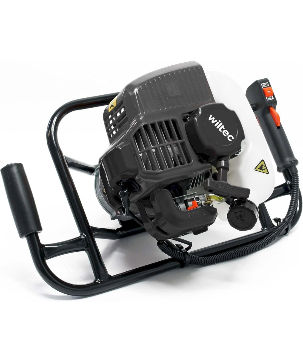 Wiltec Erdlochbohrer 1,4 kW 1,9 PS 52ccm Benzinmotor, Erdbohrer mit 2 Takt Motor, Pfahlbohrer Motorerdbohrer