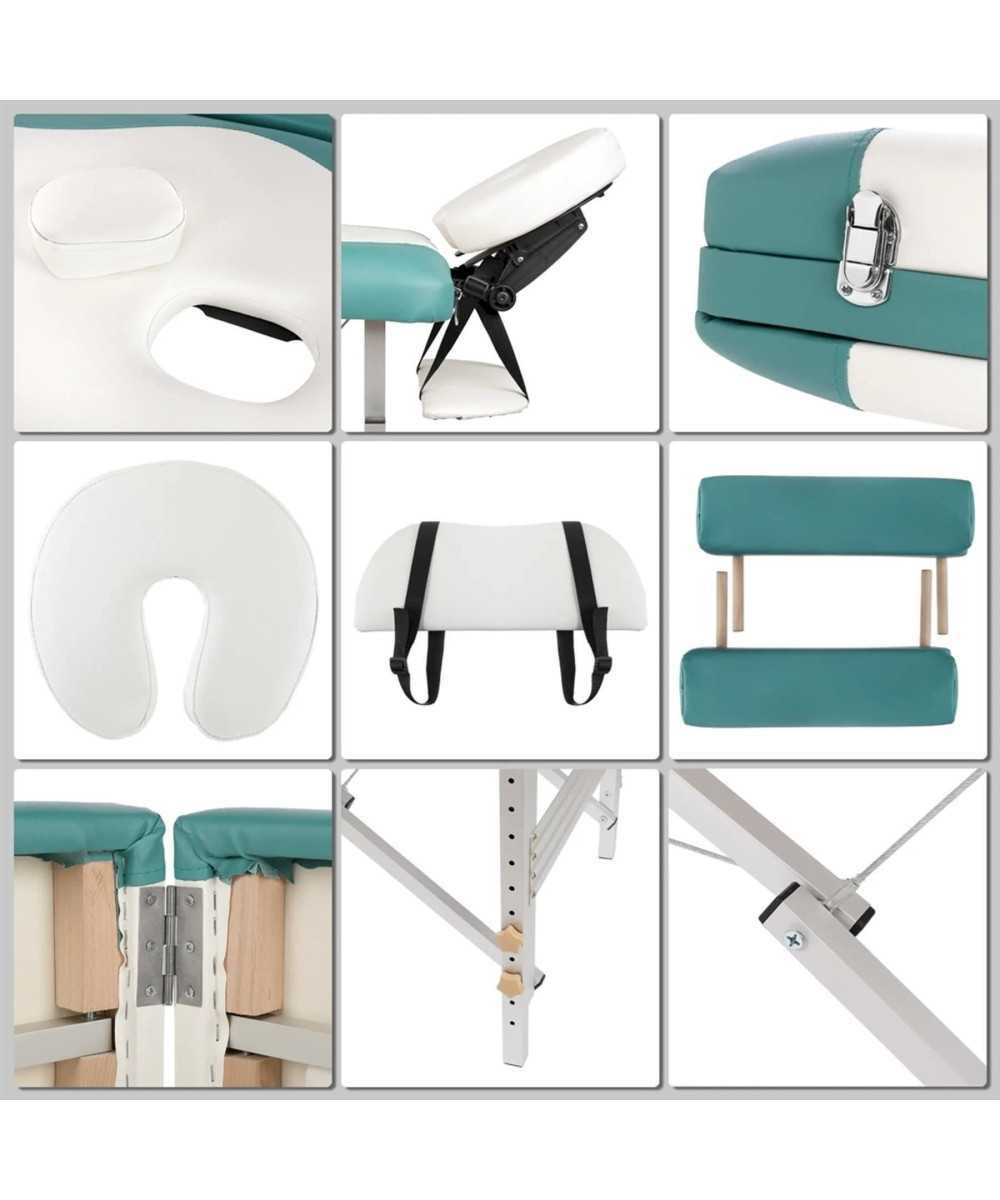 Aluminium 3 Zonen Massagetisch weiß/türkis