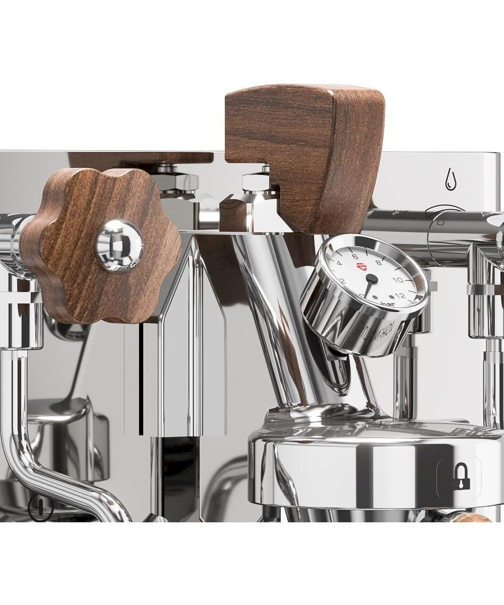 Espressomaschine mit L58E Brühgruppe und manueller Steuerung des Wasserflusses.