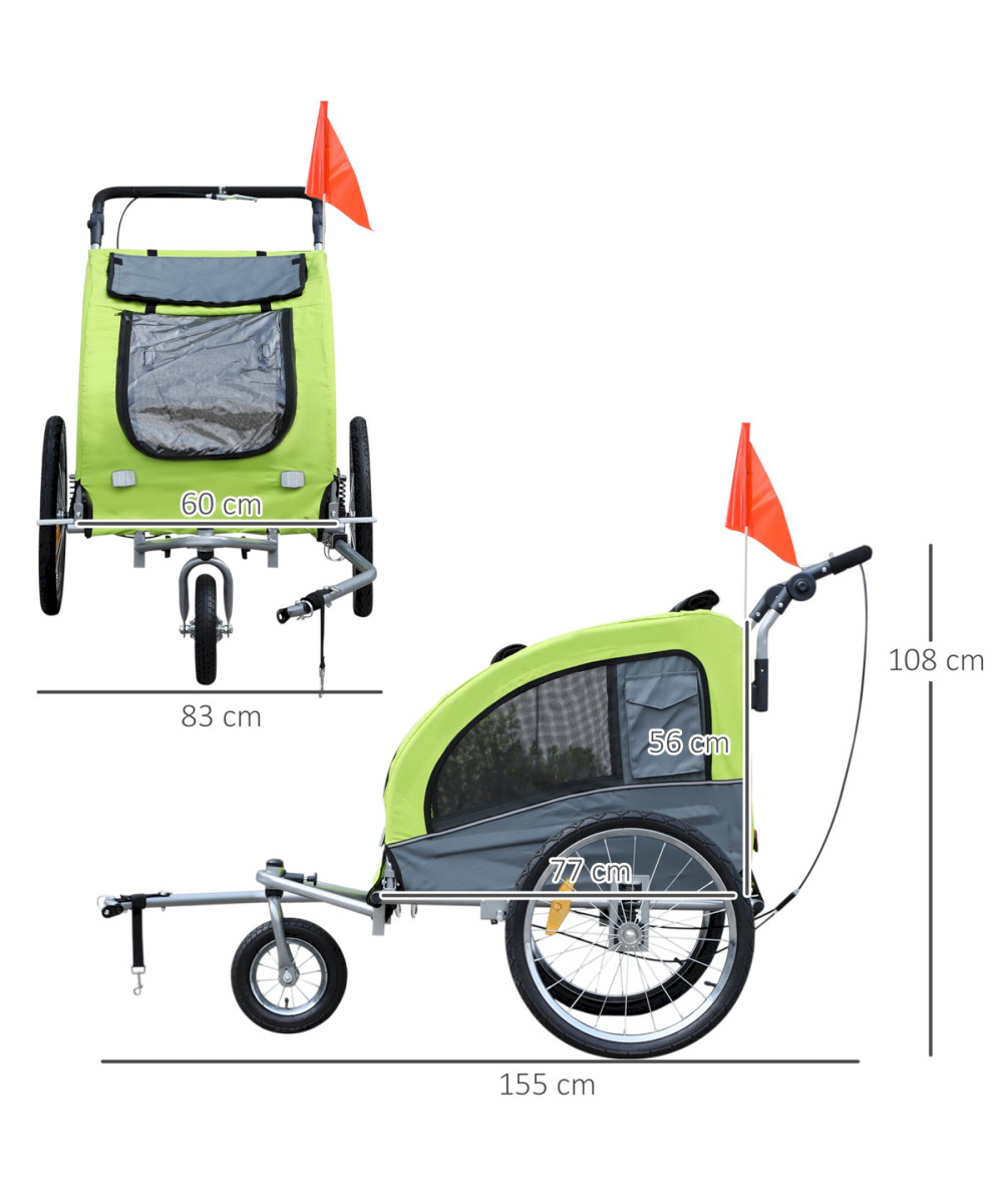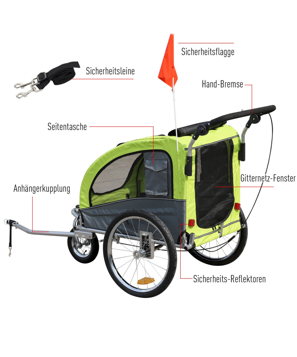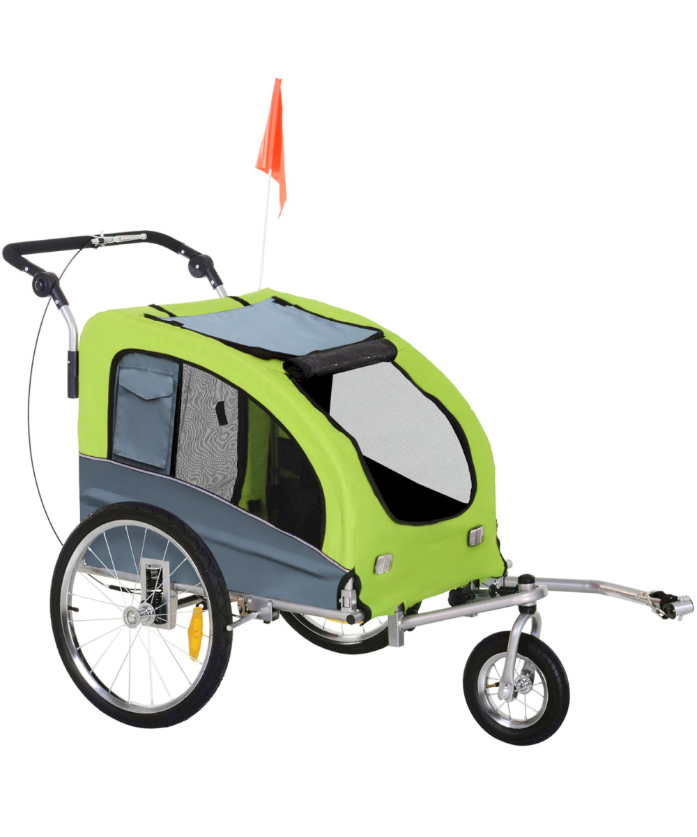 PawHut 2-in-1 Hundeanhänger mit gepolsterter Liegefläche grün/grau