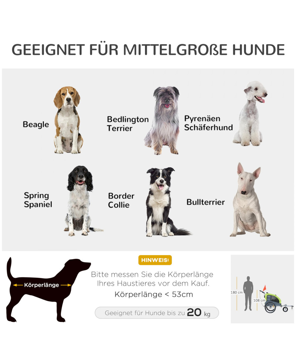 - Bequemer Zugang: Zwei unterschiedliche Eingänge bieten Ihrem Haustier eine bequeme Einstiegsmöglichkeit in den Anhänger. Belastbarkeit: 30 kg. Geeignet für mittelgroße Hunde mit einer Körperlänge bis 53 cm und einem Gewicht bis 20 kg.
