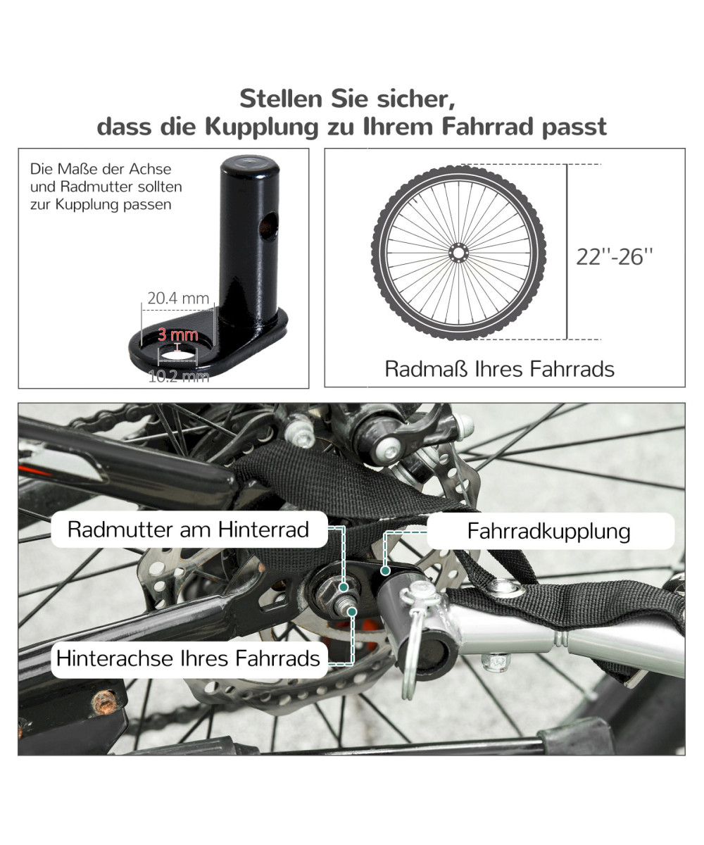 - Klappbar und kuppelbar: Die Universalkupplung ist für die meisten gängigen Fahrräder geeignet. Wenn er nicht in Gebrauch ist, kann der Anhänger bequem und platzsparend zusammengeklappt werden.