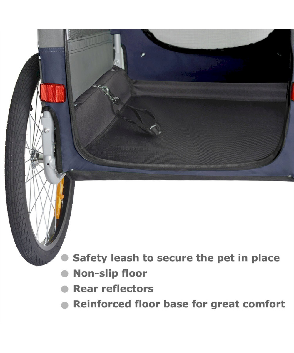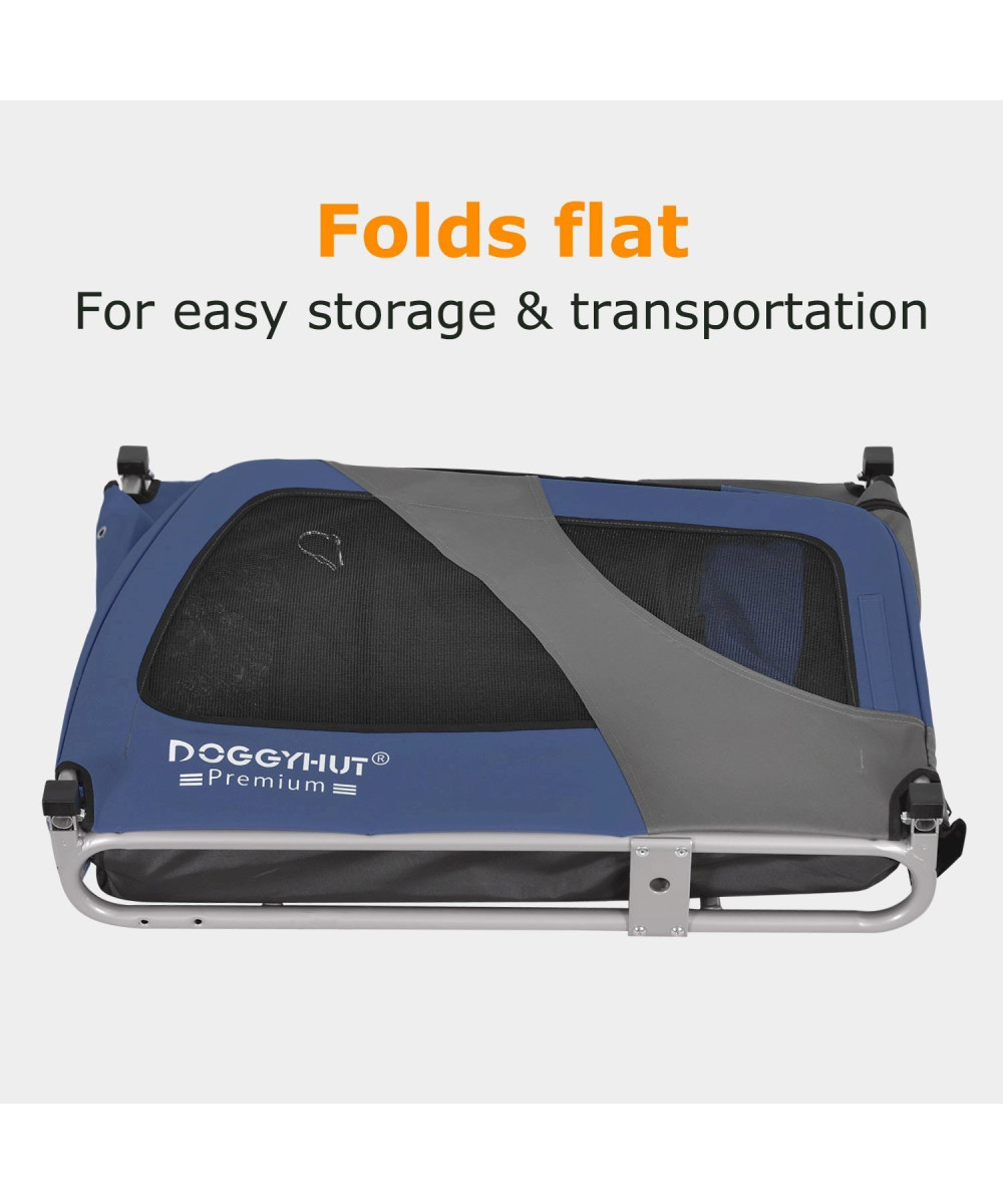 Der DOGGYHUT® XL Fahrradanhänger ist eine großartige Möglichkeit, einen aktiven Lebensstil mit Ihrem Haustier aufrechtzuhalten. Wenn Sie eine Radtour machen möchten, Ihr Haustier aber nicht dazu bereit ist, können Sie es trotzdem mitnehmen. Sie können den Anhänger auch zum Training zu Hause nutzen oder auch als Transportbox im Auto nutzen. Das Design von Veelar verfügt über einen extra breiten Radstand und einen niedrigeren Schwerpunkt, um eine hervorragende Fahrstabilität und einen leichten Zugang für Haustiere zu gewährleisten. Die Vorderseite des Anhängers besteht aus einer Netzabdeckung mit Reißverschluss und einer zweiten durchsichtigen Abdeckung als Regenschutz, um Ihr Haustier vor Wind und Wetter zu schützen. Die obere Öffnung mit Reißverschluss bietet ausreichend Lüftung. Eine optionale waschbare Haustiermatratze (separat erhältlich) sorgt dafür, dass sich die Haustiere auf langen Fahrten wohl fühlen. Der Anhänger lässt sich sehr schnelle zusammenbauen und zur Aufbewahrung und Transport einfach zusammenklappen.