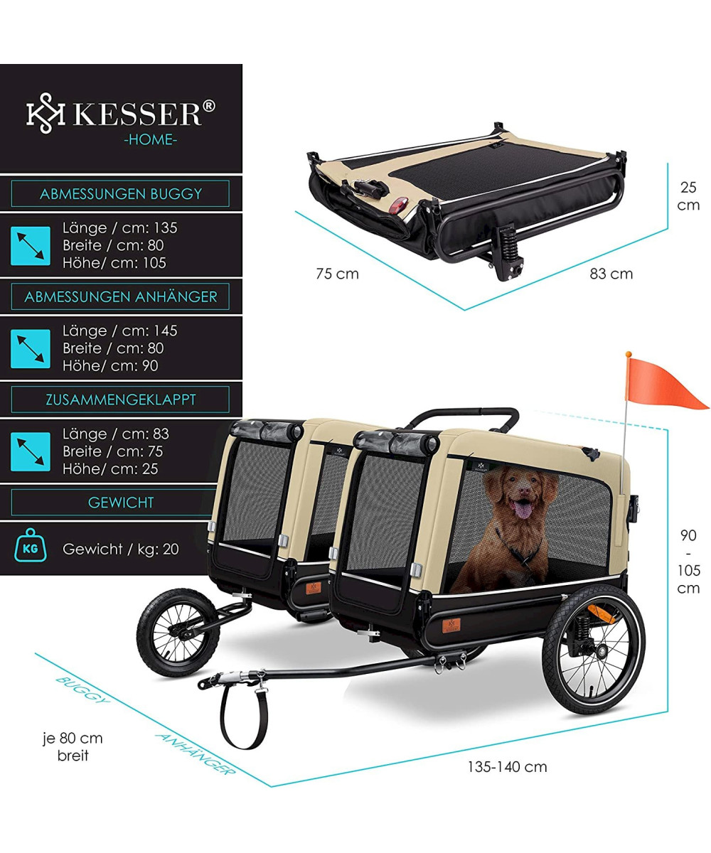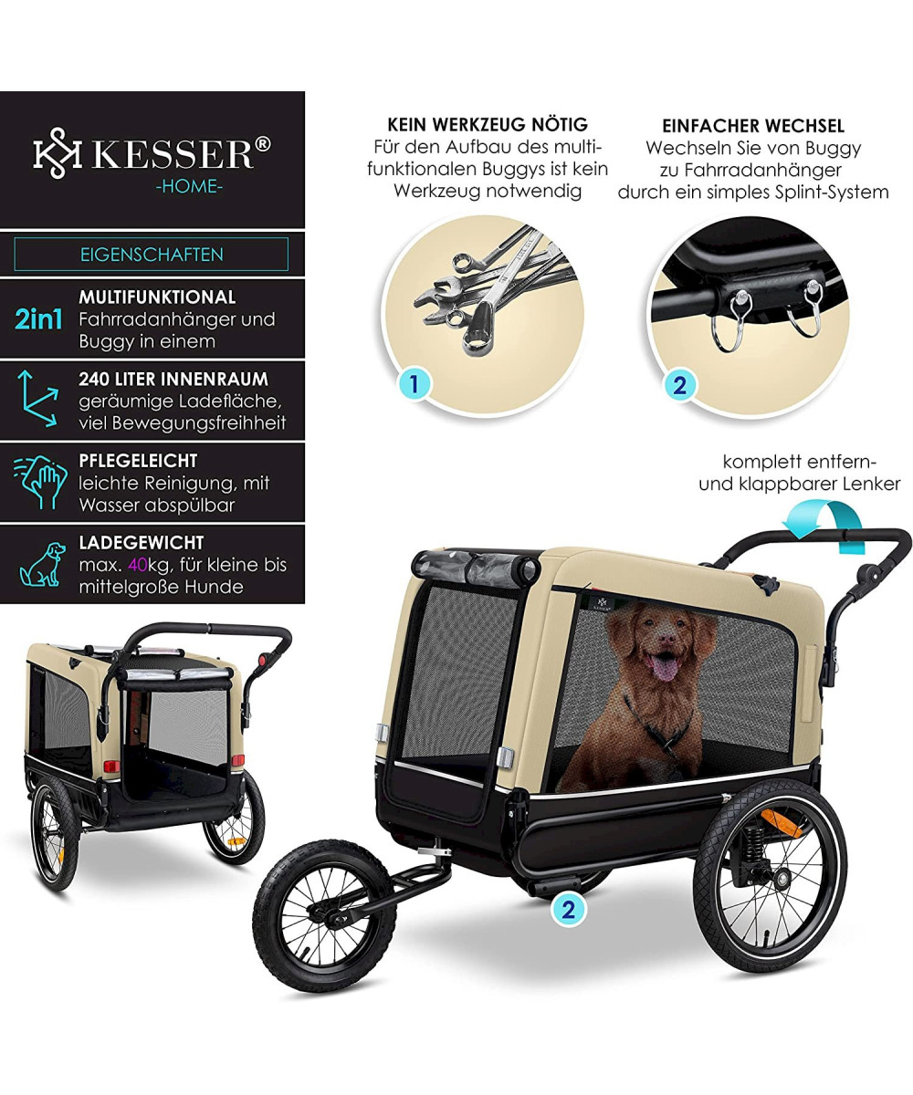- Multifunktional: Einsetzbar als Hundetransporter, Buggy oder Fahrradanhänger