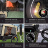 - Reflektoren und Leuchtstreifen vorne, hinten sowie an Rädern und Aufbau