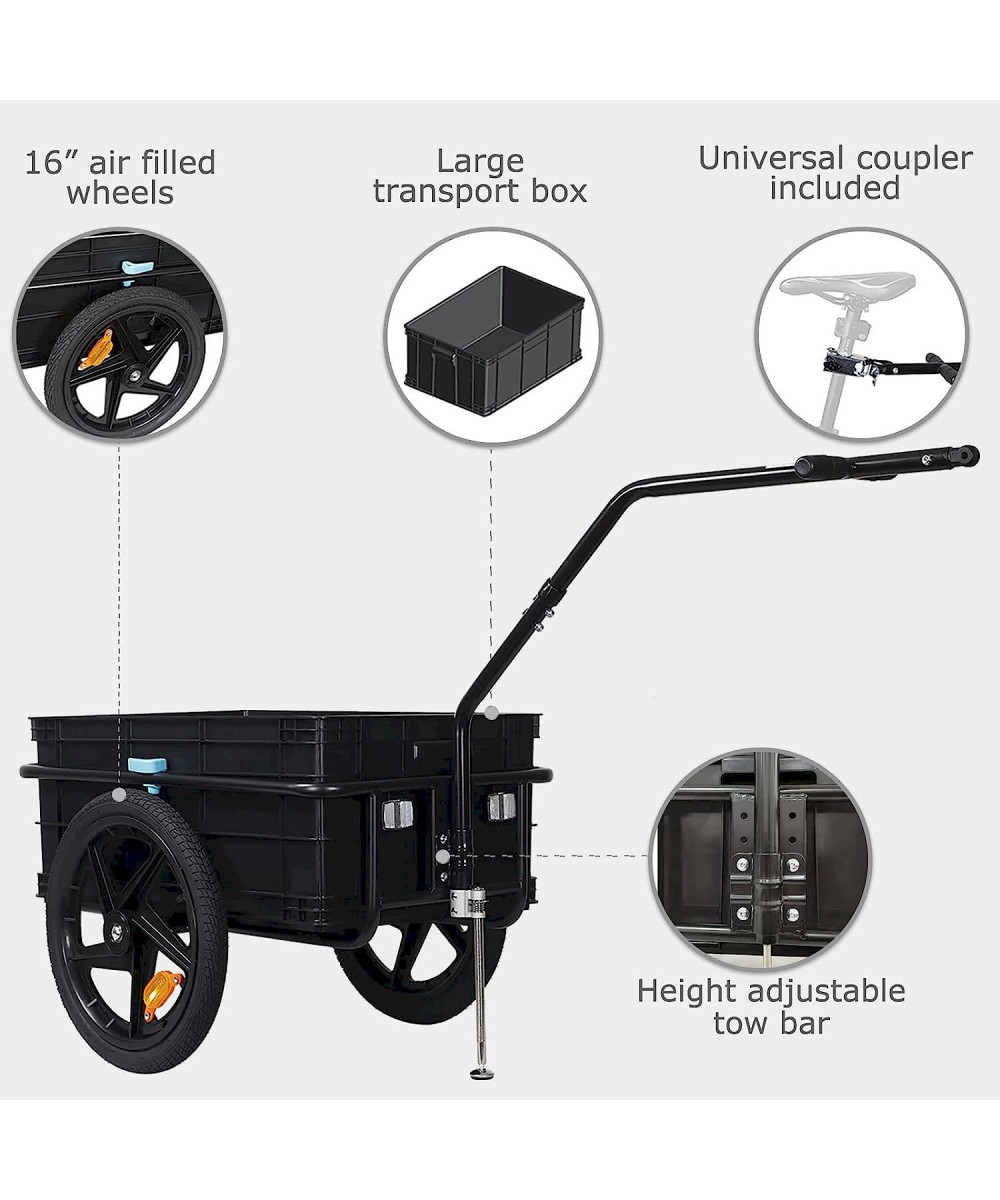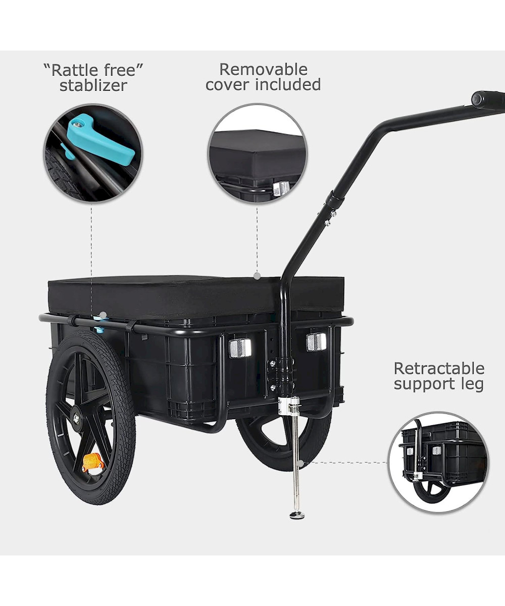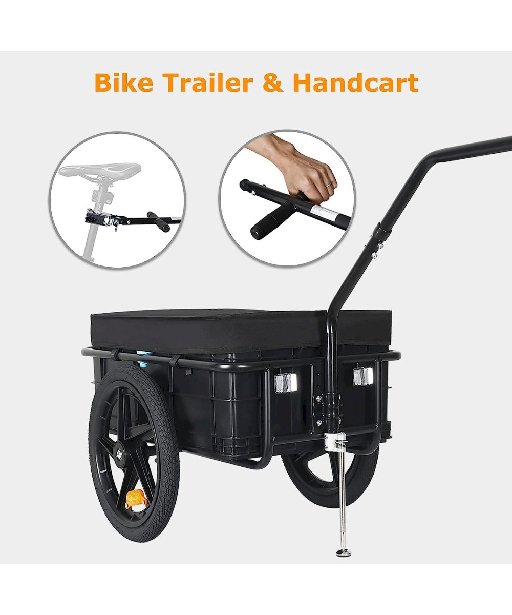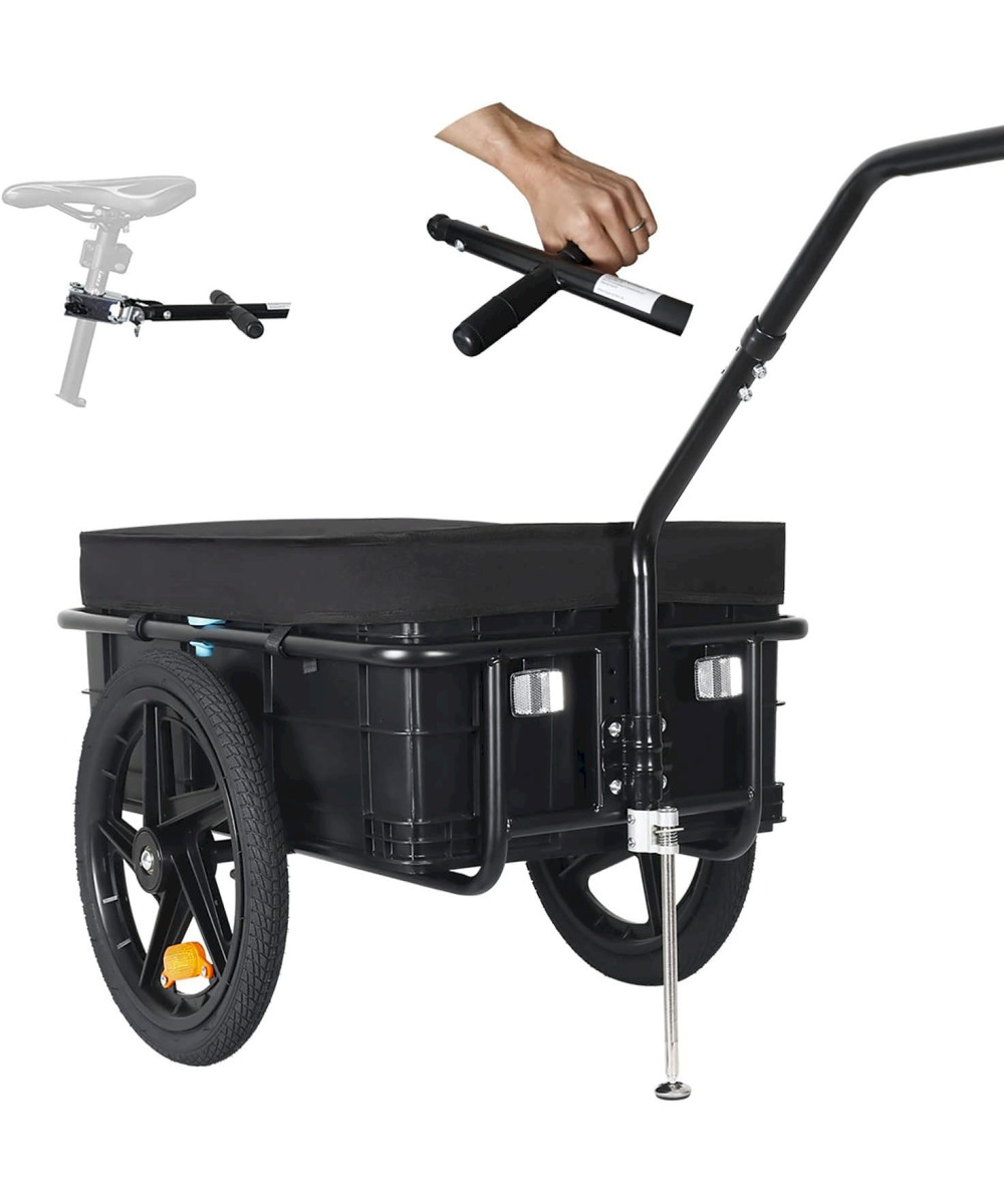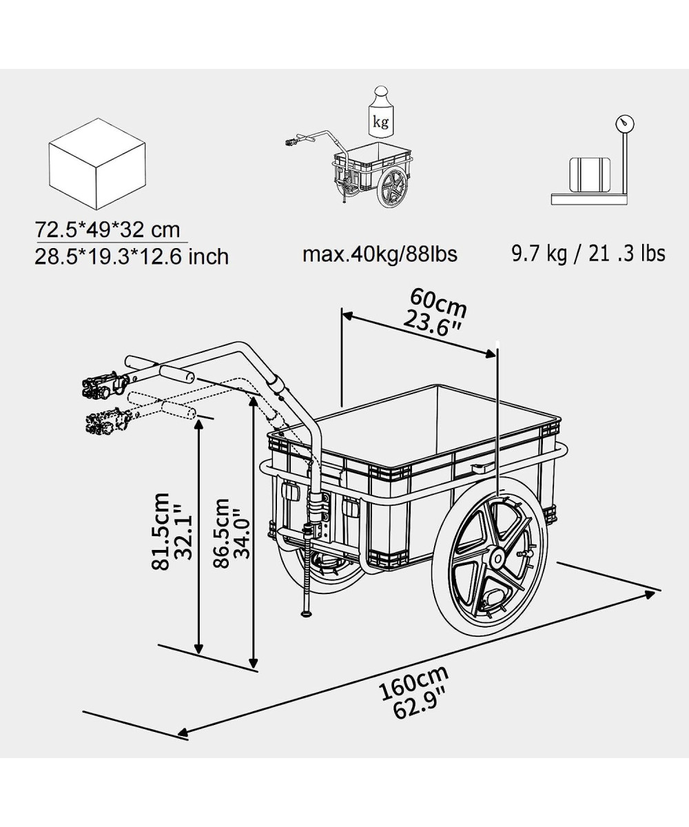 Maximale Beladung: 40 kg (als Fahrradanhänger), 60 kg (als Handwagen)