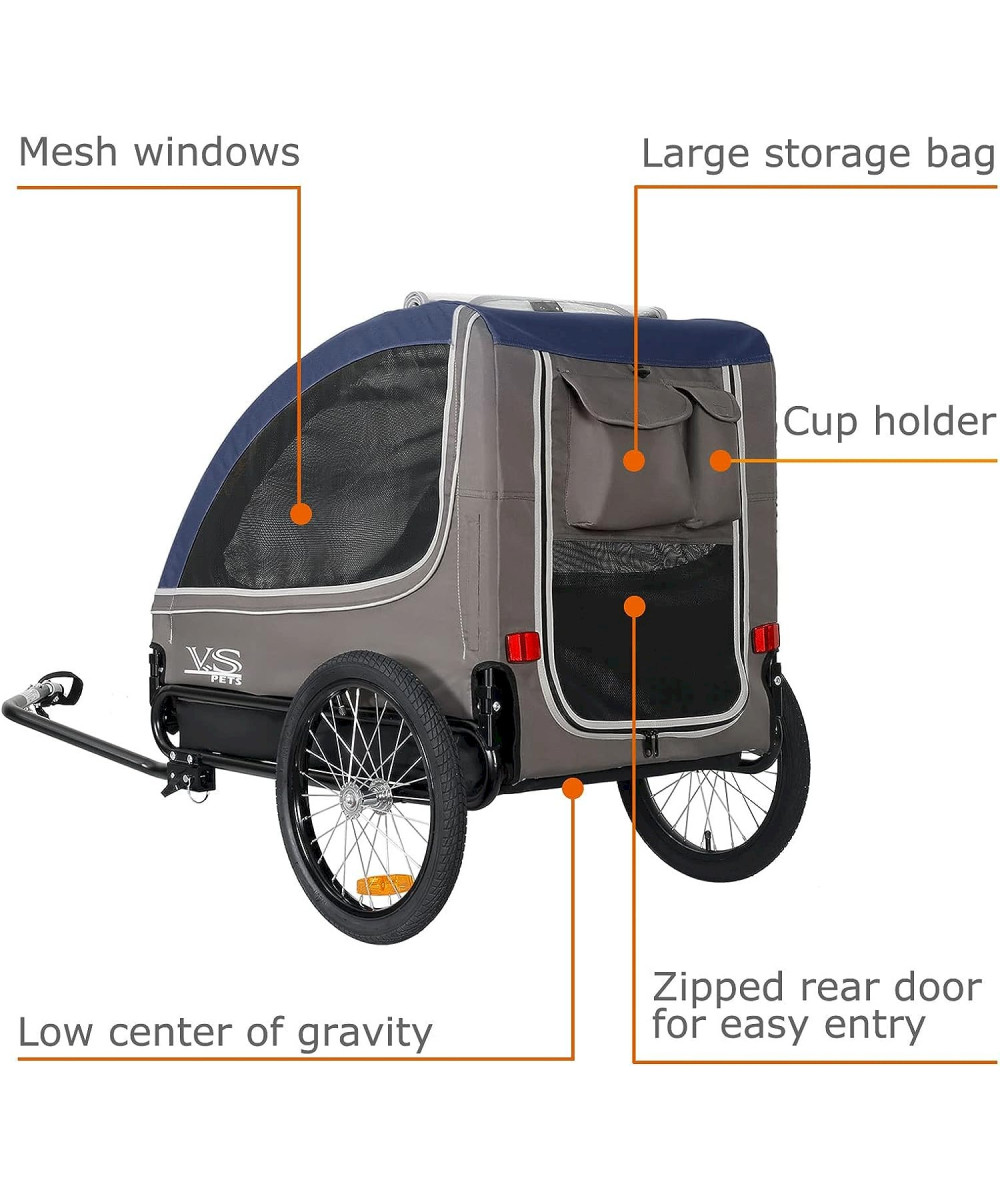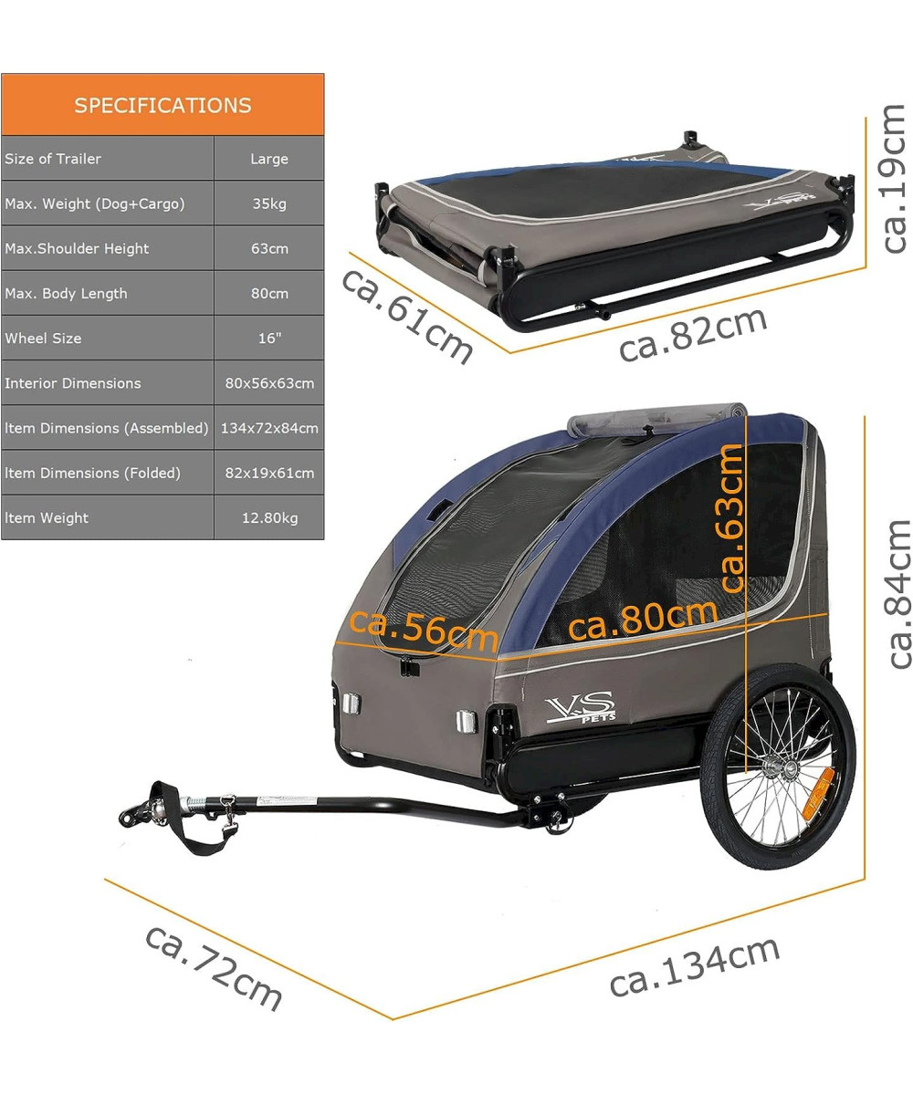 TIGGO VS Pets Large Hundeanhänger Fahrradanhänger BLAU GRAU