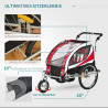 HOMCOM Kinderfahrradanhänger für 2 Kinder inkl. Reflektoren u. Fahne Rot + Weiß