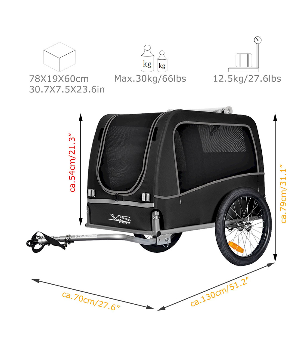 TIGGO VS Classical Hundeanhänger Schwarz ohne Jogger Hundefahrradanhänger Fahrradanhänger
