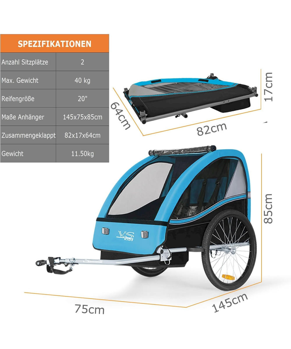 TIGGO VS Kinderanhänger Fahrradanhänger Blau / Schwarz