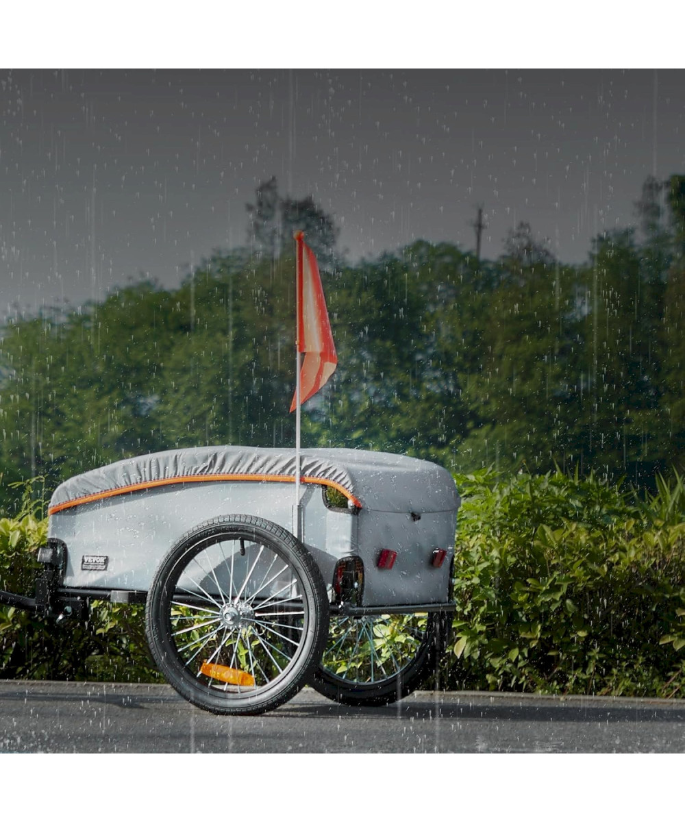 Material in Industriequalität: Dieser Fahrradanhänger verfügt über einen robusten Stahlrahmen mit rostbeständiger Beschichtung, der für Langlebigkeit und ein elegantes Erscheinungsbild sorgt. Darüber hinaus bleibt Ihre Ausrüstung mit der Regenhülle aus 420D Oxford-Gewebe vor den Elementen geschützt, egal ob es regnet oder die Sonne scheint.