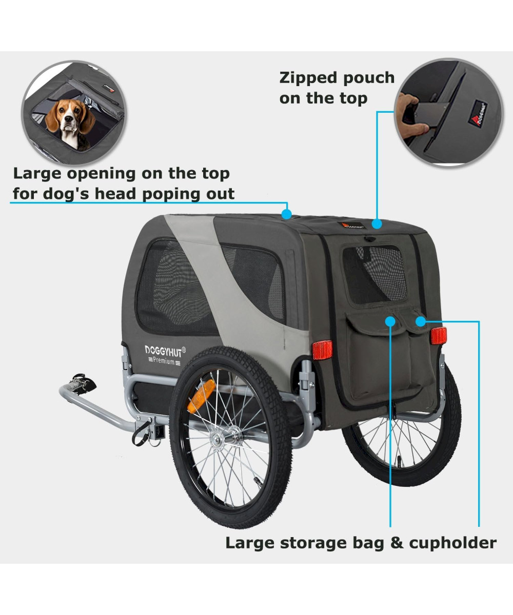 DOGGYHUT MEDIUM Fahrrad Hundeanhänger GRAU Hundefahrradanhänger ohne Jogger