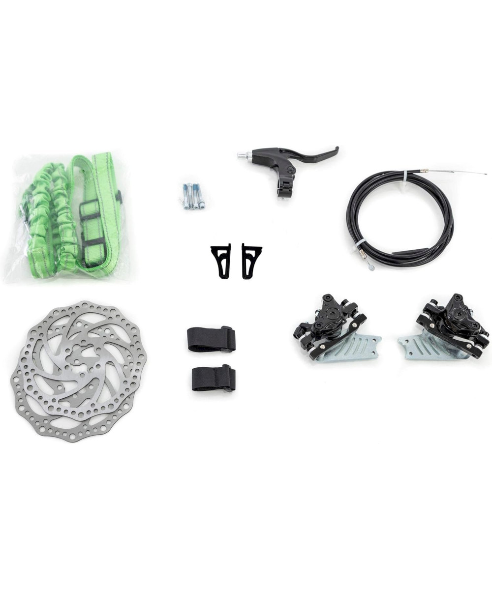 Darf es etwas noch etwas sportlicher sein? Mit dem Qeridoo Scheibenbremse Nachrüstset kannst Du Deinen Qeridoo Fahrradanhänger schnell aufrüsten. Gerade wenn Du viele und längere Touren mit Gefälle planst, solltest Du Dir unbedingt das umfangreiche Set anschaffen. Die mechanische Scheibenbremse mit Ø 160 mm Rotore und das Zubehör, das unter anderem ein Joggerband, Bremshebel und Bremssättel enthält, machen Deinen Anhänger sicher und vielseitiger.