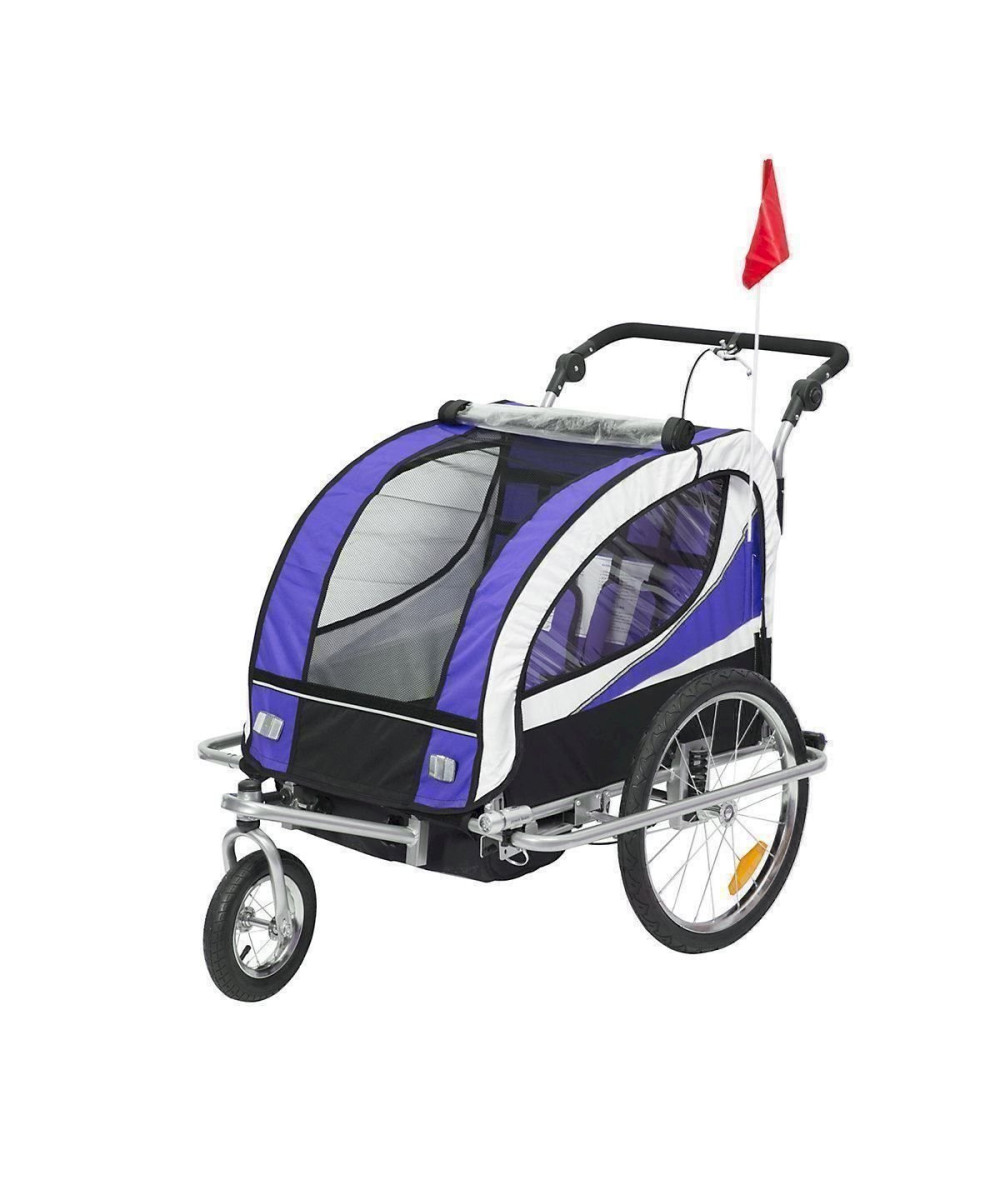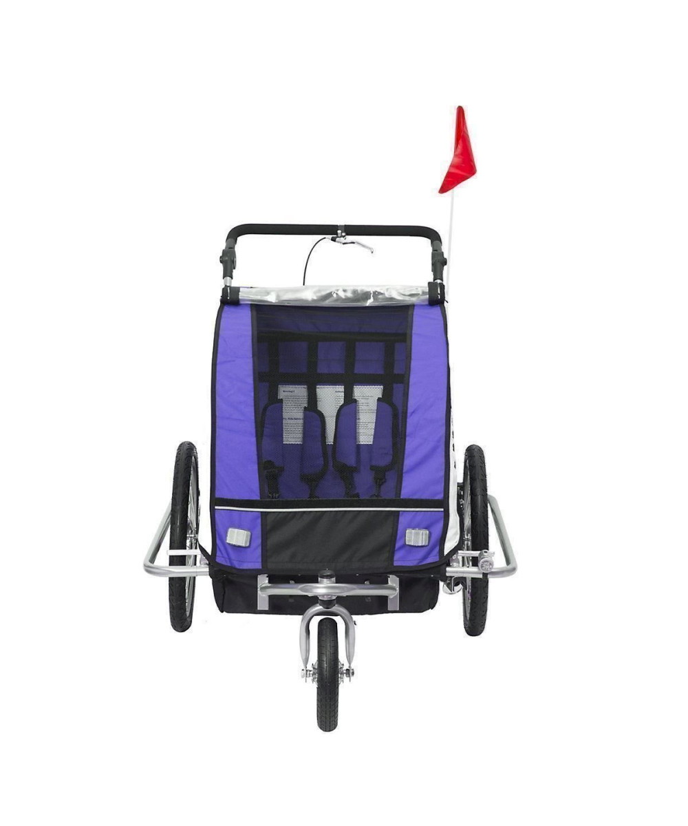 HOMCOM 2 in 1 Kinderanhänger 2 Kinder 360° lila