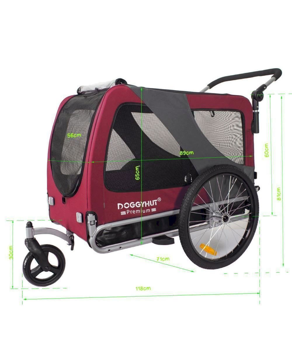 DOGGYHUT Premium XL 2in1 Hundefahrradanhänger & Jogger rot