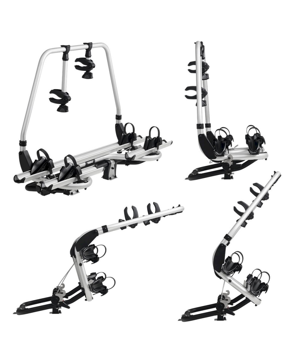 - Einfache Aufladung der Fahrräder durch abnehmbare Fahrradhaltearme mit abschließbaren Thule AcuTight-Drehmomentbegrenzer-Knöpfen, die klicken, wenn das optimale Drehmoment erreicht ist