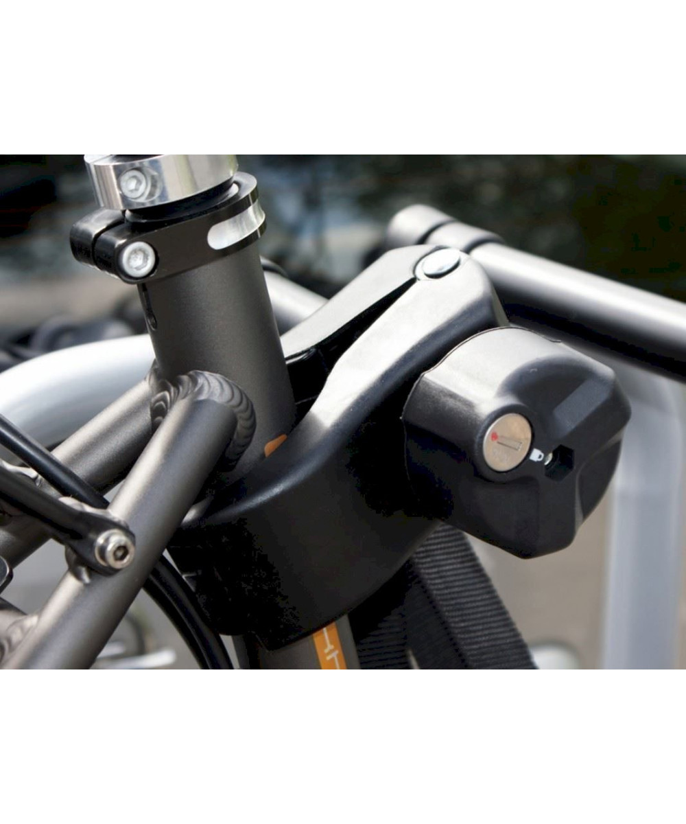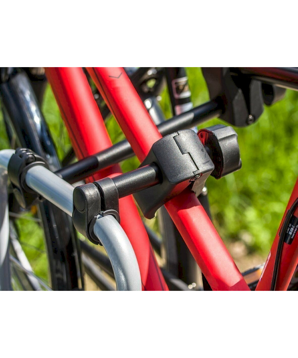 Der Abklappmechanismus ermöglicht in der Regel das Öffnen des Kofferraums auch mit montierten Fahrrädern. Ein stabiler und abschließbarer Rahmenhalter dient zur diebstahlsicheren Befestigung der Fahrräder.