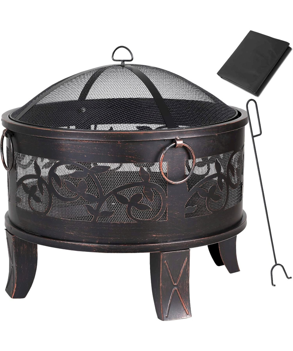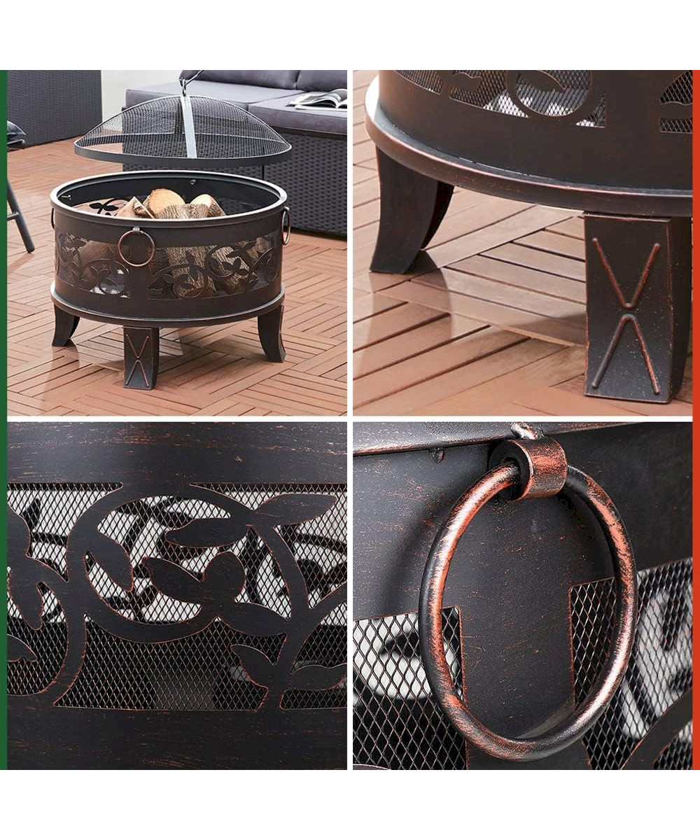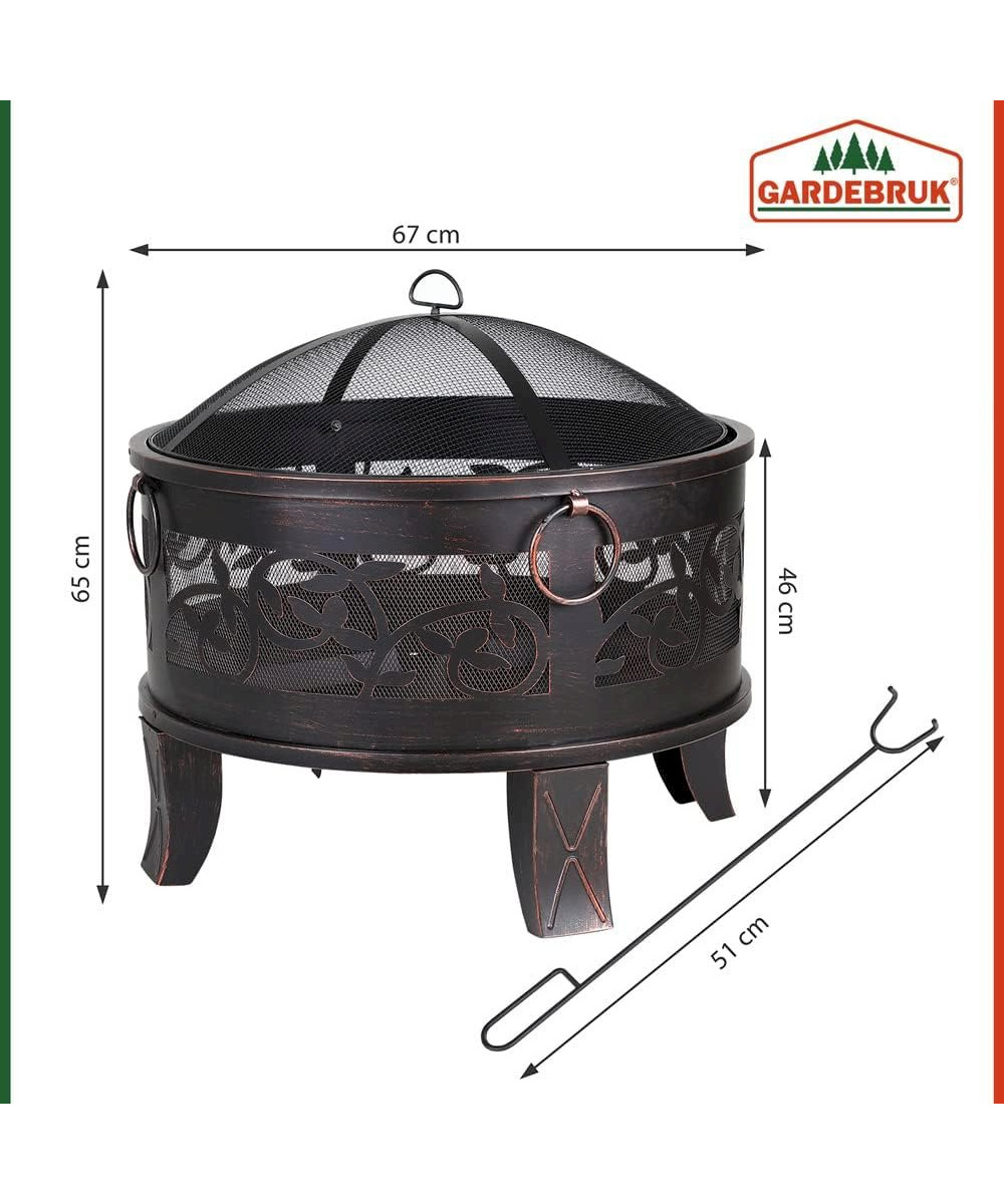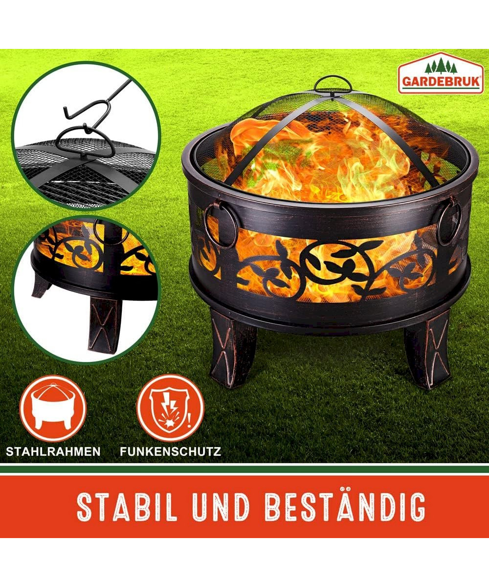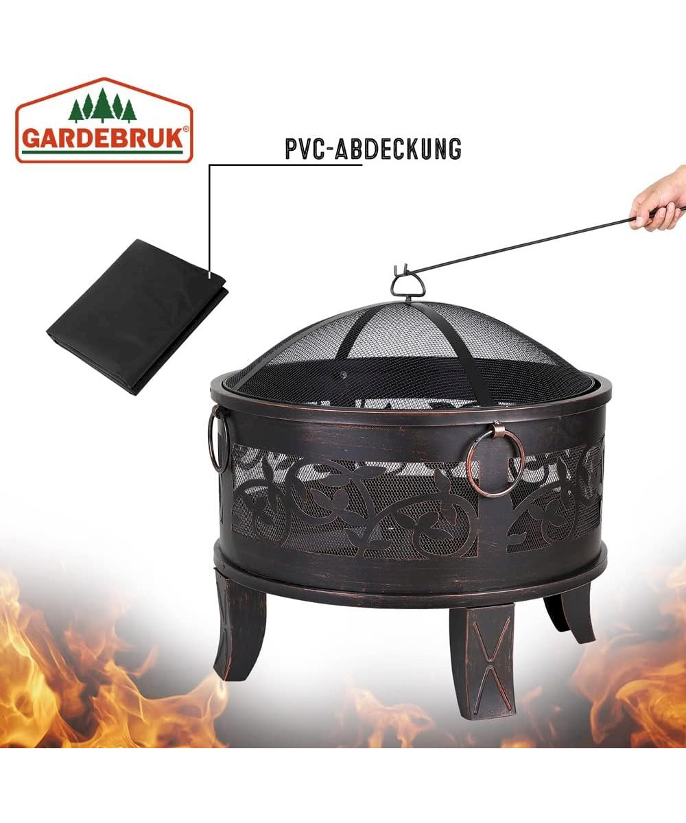 Mit dem mitgelieferten Funkengitter können Sie in Ruhe die Wärme genießen. Besonders praktisch ist zudem der mitgelieferte Feuerhaken und die Abdeckung, mit der Sie Ihre Feuerschale bei Nichtbenutzung schützen können.