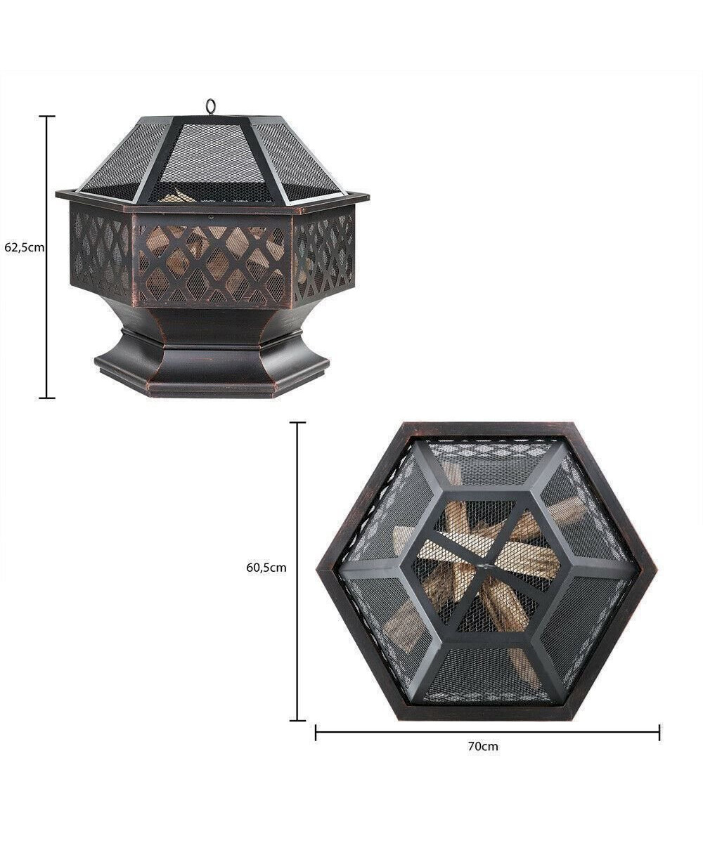 Feuerstelle sechseckiger Feuerkorb inkl. Abdeckung