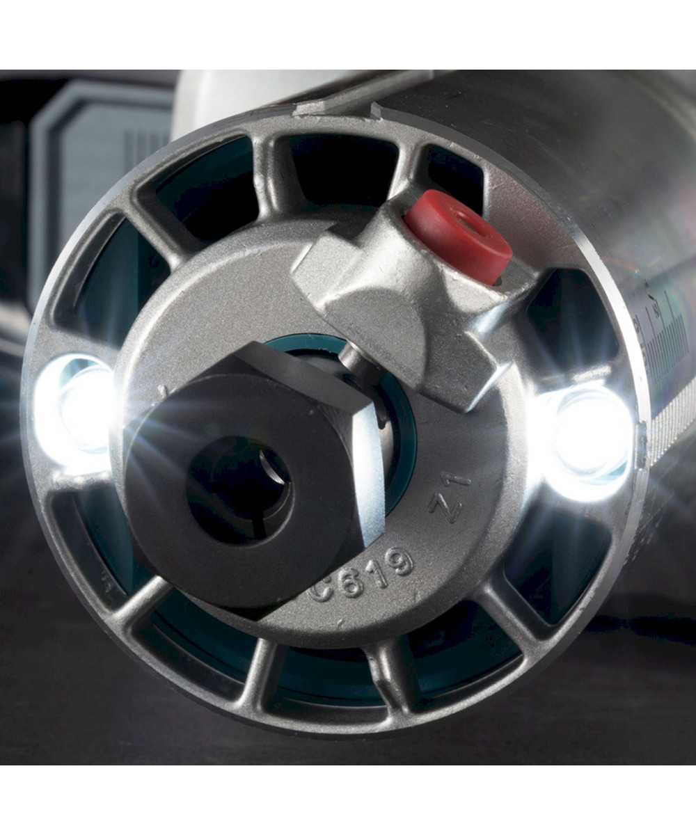 Staubarme Multifunktionsfräse mit AWS-Schnittstelle. Lieferung inklusive drei Modulen und passenden Adaptern zur Staubabsaugung, ohne AWS Funk-Adapter. Stufenlos einstellbare Drehzahl per Stellrad. Softstart und Konstantelektronik. Leuchtstarke Doppel-LED mit Vor- und Nachglimmfunktion. Für 6-mm- und 8-mm-Fräser.