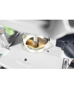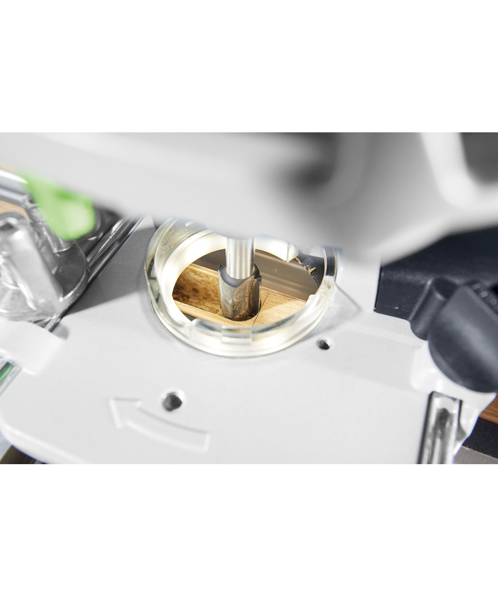 Für freie Sicht auf das Werkstück sowie gesünderes, präzises und zeitsparendes Arbeiten sorgt die perfekte Kombination mit den Festool Saugern. Der Bajonettverschluss ermöglicht einfaches Aufstecken und sicheren Halt von Saugschläuchen D 27 und D 36.