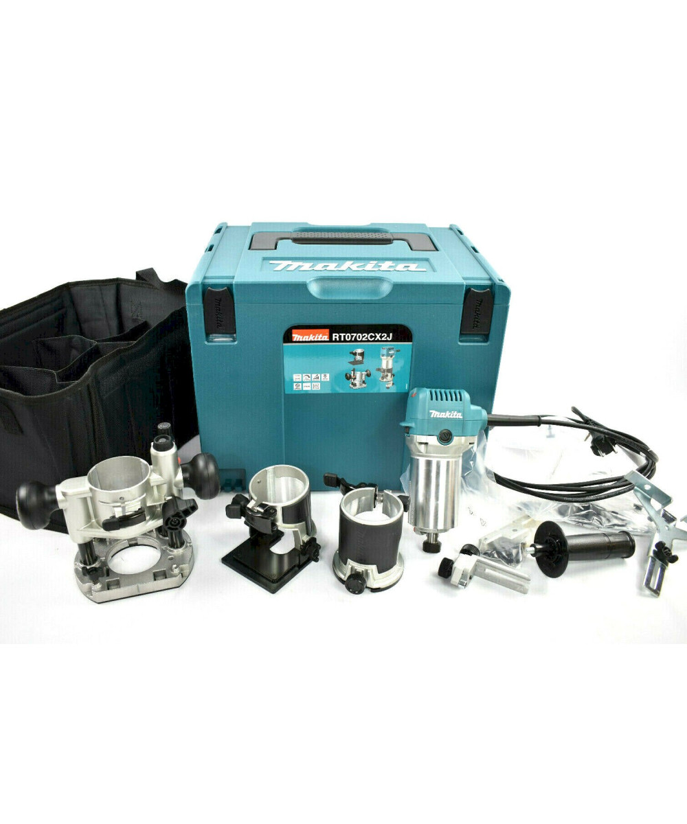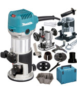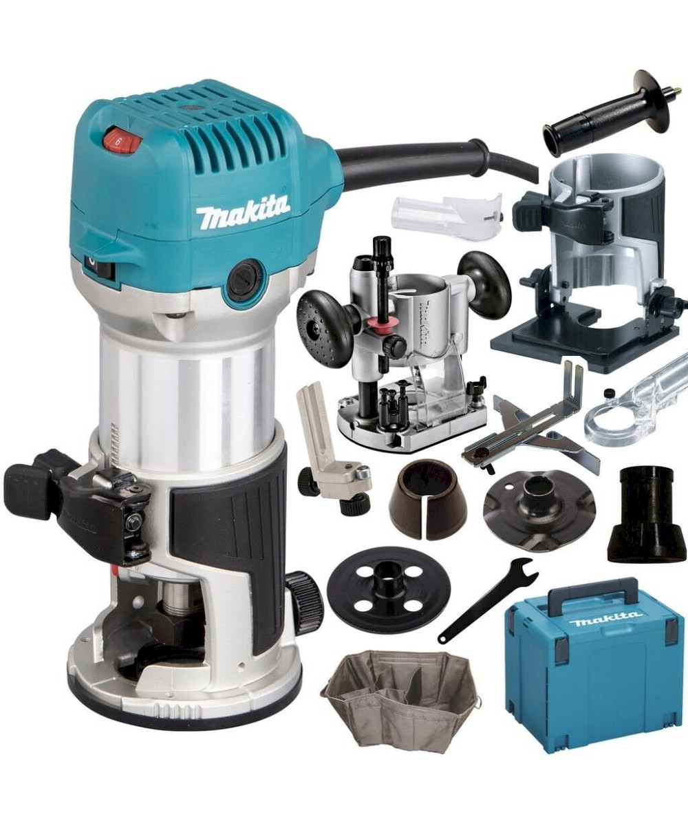 Makita RT0702CX2J Einhand Multifunktionsfräse 710W mit variablen Geschwindigkeitskontrolle inkl. Fräsmodule