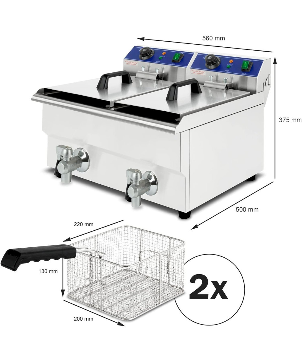 vertes Fritteuse 2 x 13L - Profi Edelstahl Doppel Fritteuse Gastronomie