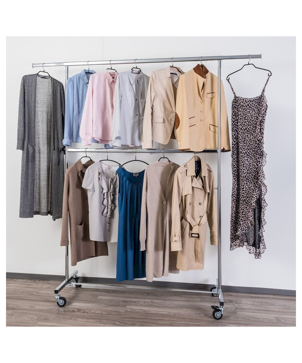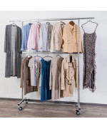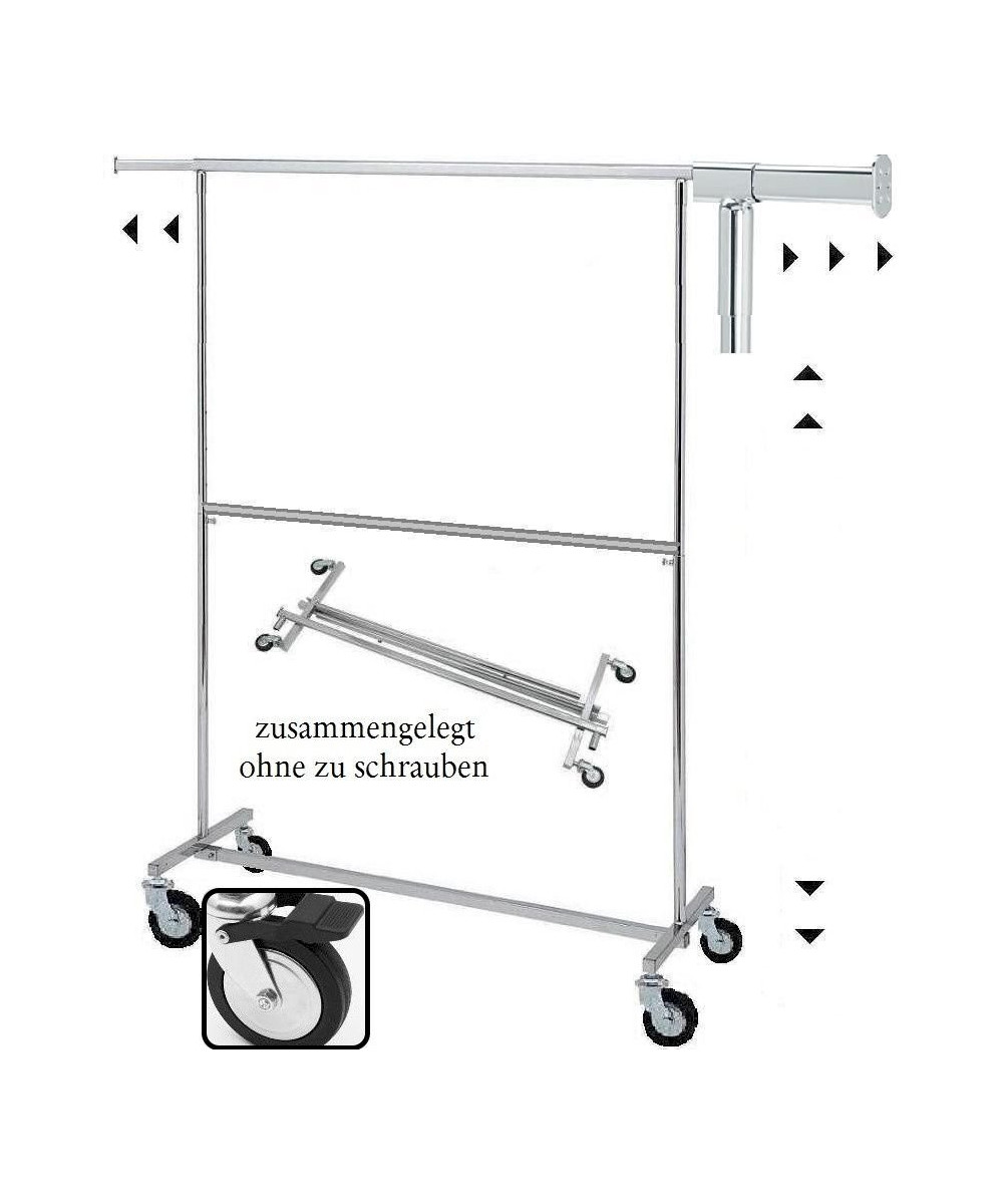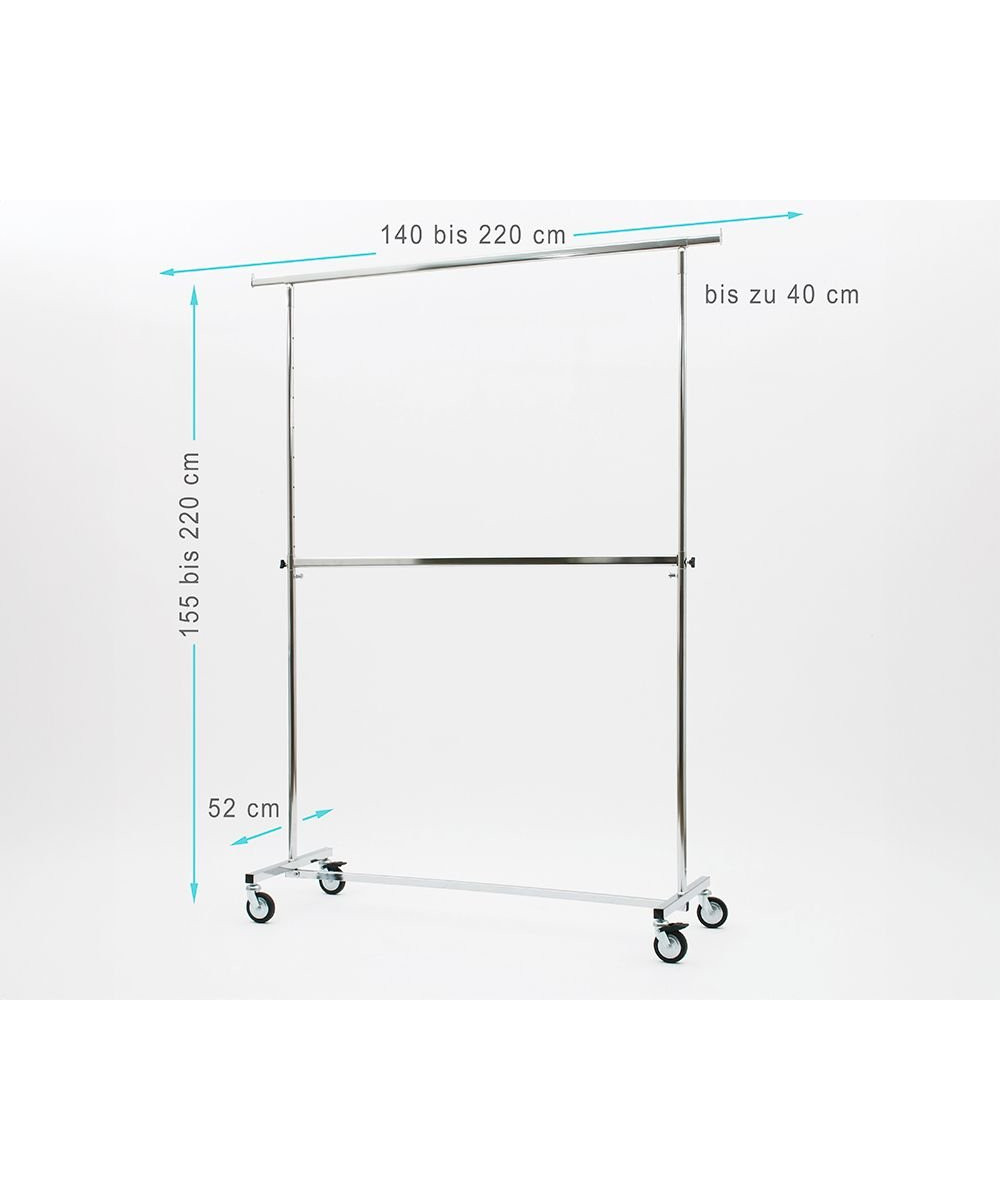 Doppel Jumbo Kleiderständer klappbar mit verstellbarer Zwischenebene + Rollen / Breite 140-220cm / Höhe 155-220cm / bis zu