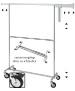 Der Kleiderständer besticht durch ihre moderne Linie. Er ist durch ihre Machart äußerst standfest und unverwüstlich. Dauerhaft glanzverchromt, der Konfektionsständer ist stapelbar.