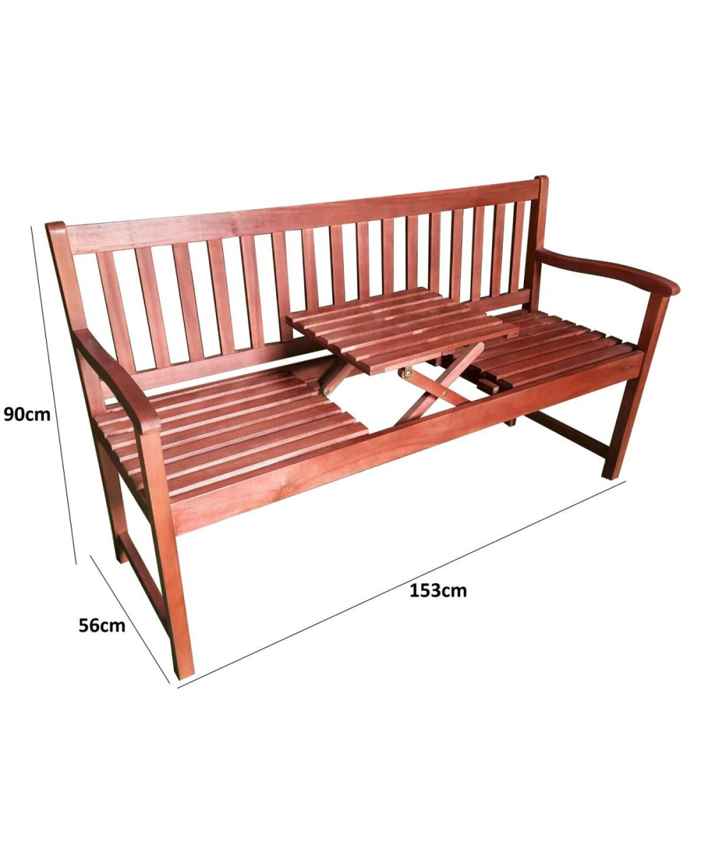 3-Sitzer Gartenbank mit Tisch 153x56x90cm Akazienholz Hochklapptisch Outdoor Möbel Bank Sitzbank