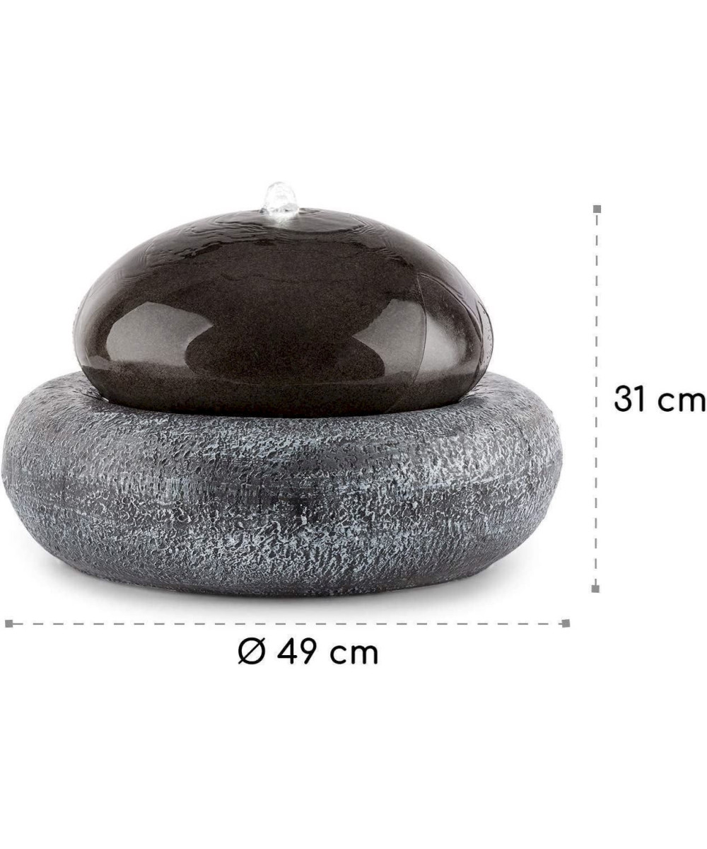 Mit dem sanften Plätschern des Blumfeldt Ocean Planet Zierbrunnens wird das Relaxen gleich noch mal so schön. Aus wunderbar leichtem und extrem robustem Polyresin wurde der Brunnen so geformt, dass er unwillkürlich an übereinandergelagerte Flusssteine erinnert. Das herausströmende Nass, das aus seinem höchsten Punkt sprudelt und sanft über die Außenhaut zurück ins Auffangbecken strömt, verstärkt diesen Eindruck zusätzlich. Das Stimmungslicht aus vier weißen LEDs an der Ausströmöffnung sorgt dabei für funkelndes Glitzern wie Sonnenlicht, dass sich in einem sprudelnden Bach bricht.