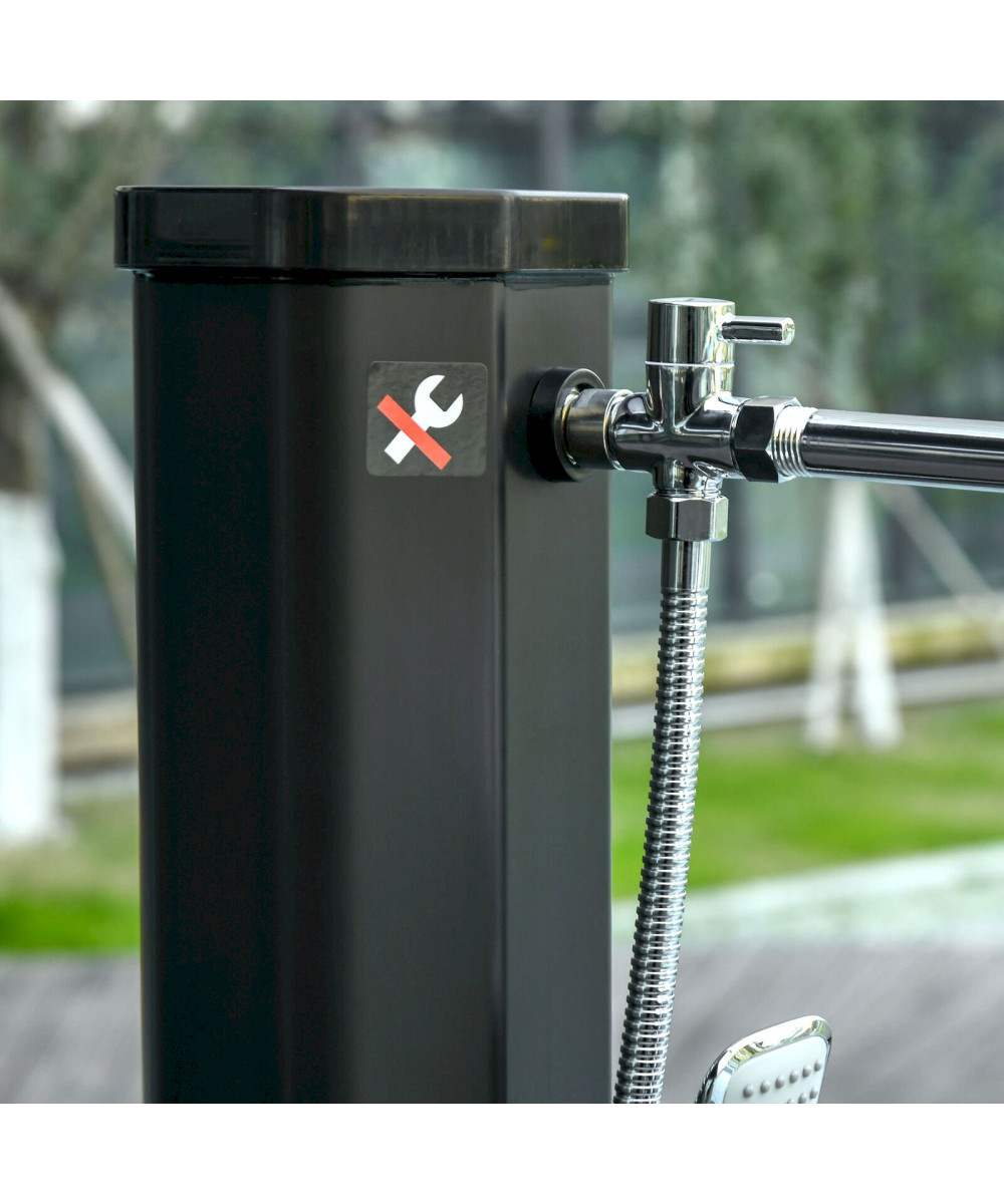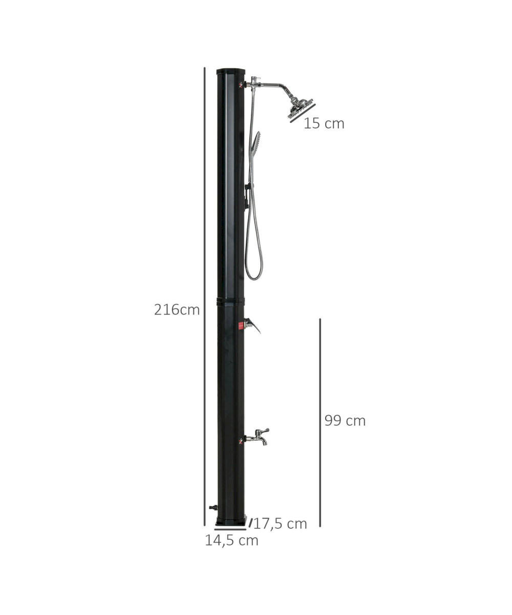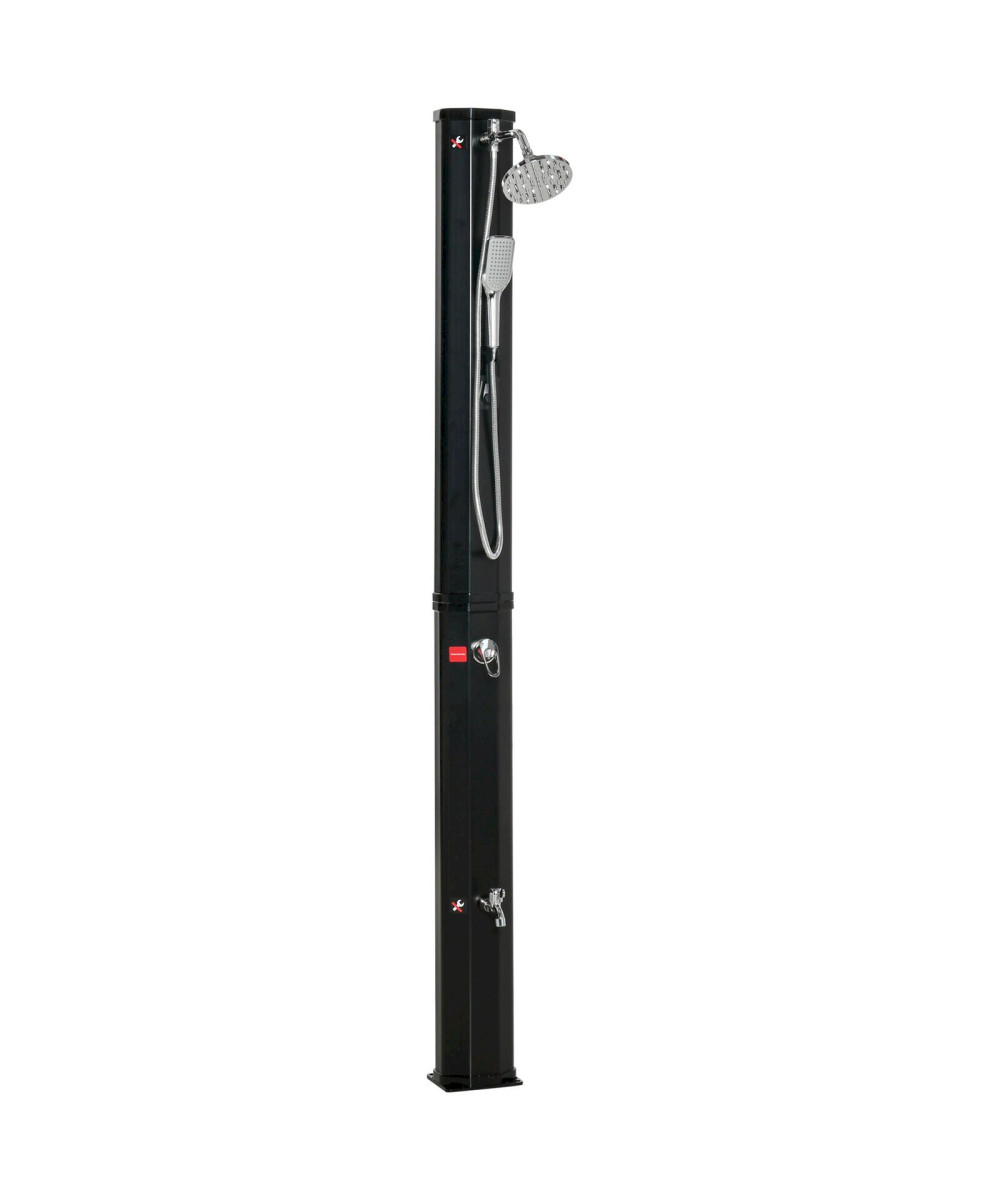 Outdoor Solardusche 35 Liter 0-55°C schwarz mit Wasserhahn, Handbrause und Regenduschkopf