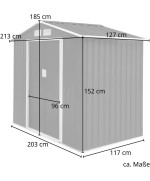 Dank der weit öffnenden Doppel-Schiebetüren, ist das Haus leicht zugängig und auch größere Geräte lassen sich leicht ein- und ausräumen. Die Belüftungsgitter sorgen für eine gute Luftzirkulation und beugen Feuchtigkeit und Schimmel-Bildung vor.
