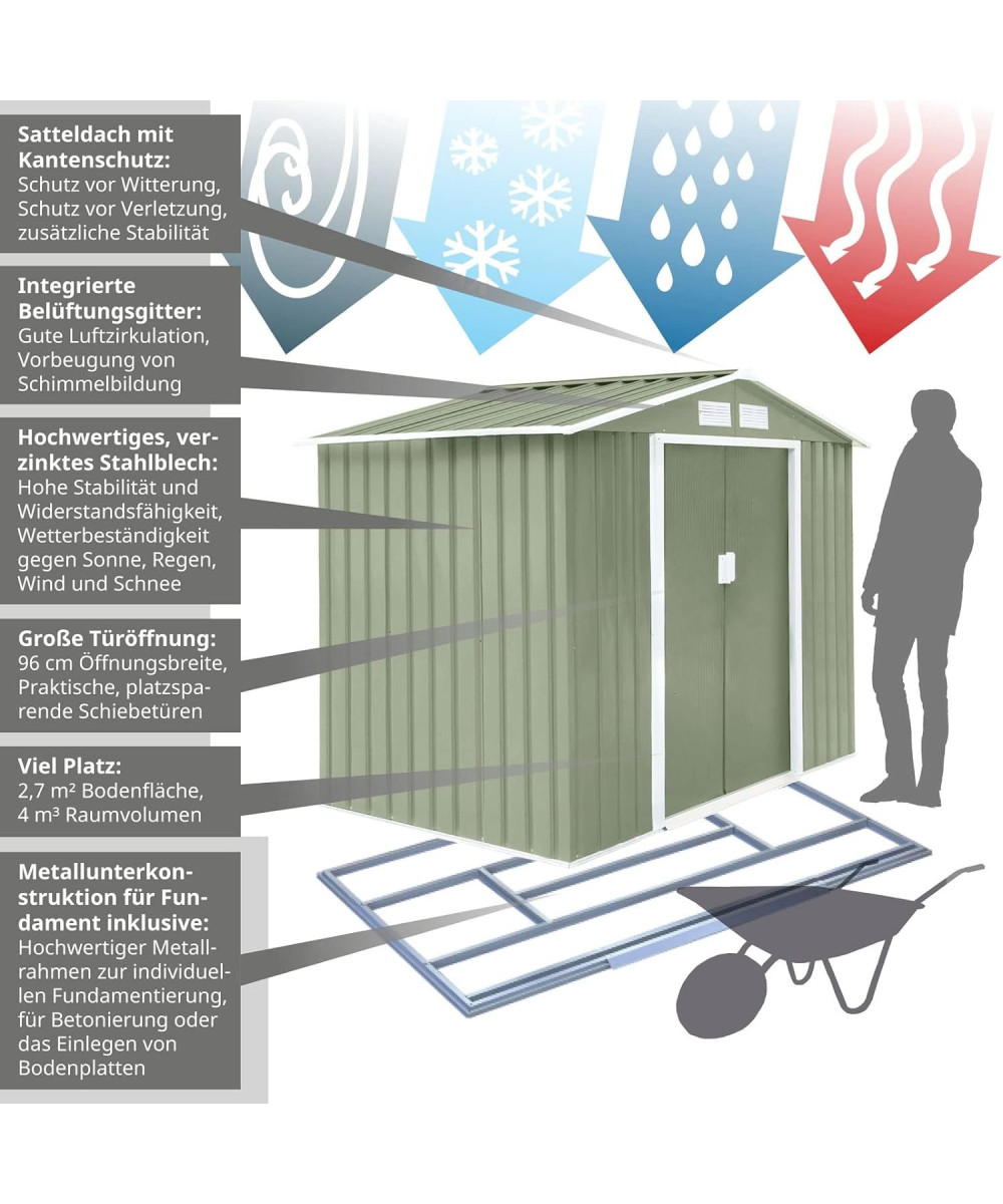 - 1x Gerätehaus inkl. Metall-Fundament - als Bausatz in Grün