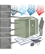 Der Schuppen ist aus lackiertem und verzinktem Stahlblech gefertigt und in einem zeitlosen Design gehalten. Der mitgelieferte Fundament-Rahmen aus Metall bietet Stabilität und einen sicheren Stand - Sie haben hier die Möglichkeit einen Boden einzuziehen (Bodenplatten nicht im Lieferumfang enthalten). Die Dachform lässt Niederschlag problemlos ablaufen. Das HATTORO Gerätehaus ist leicht zu reinigen und außerdem wartungsfrei.