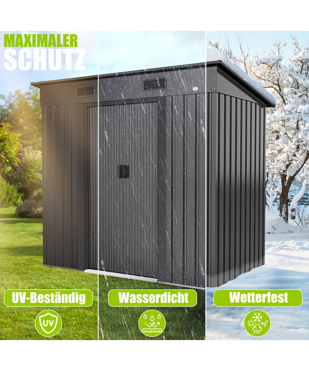 Metall Gerätehaus 3,4 m³ Geräteschuppen mit 2 Schiebetür und Fundament anthrazit