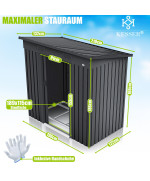 Das Gartenhaus bietet Platz für Fahrräder, Werkzeuge, Rasenmäher Gartenmöbel, Autoreifen und andere Gegenstände. Es besitzt außerdem eine zweigeteilte Schiebetür, 4 Belüftungsöffnungen an der Oberseite (jeweils 2 x vorne und hinten).