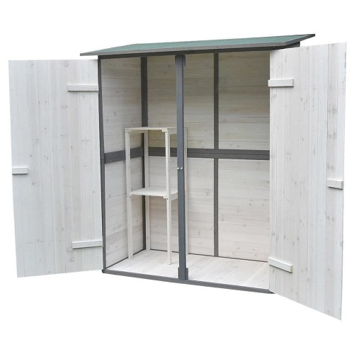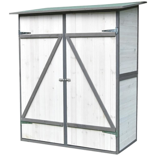 Mucola 50002070 Geräteschuppen Weiß/Grau Gerätehaus Holz Geräteschrank Gartenschrank