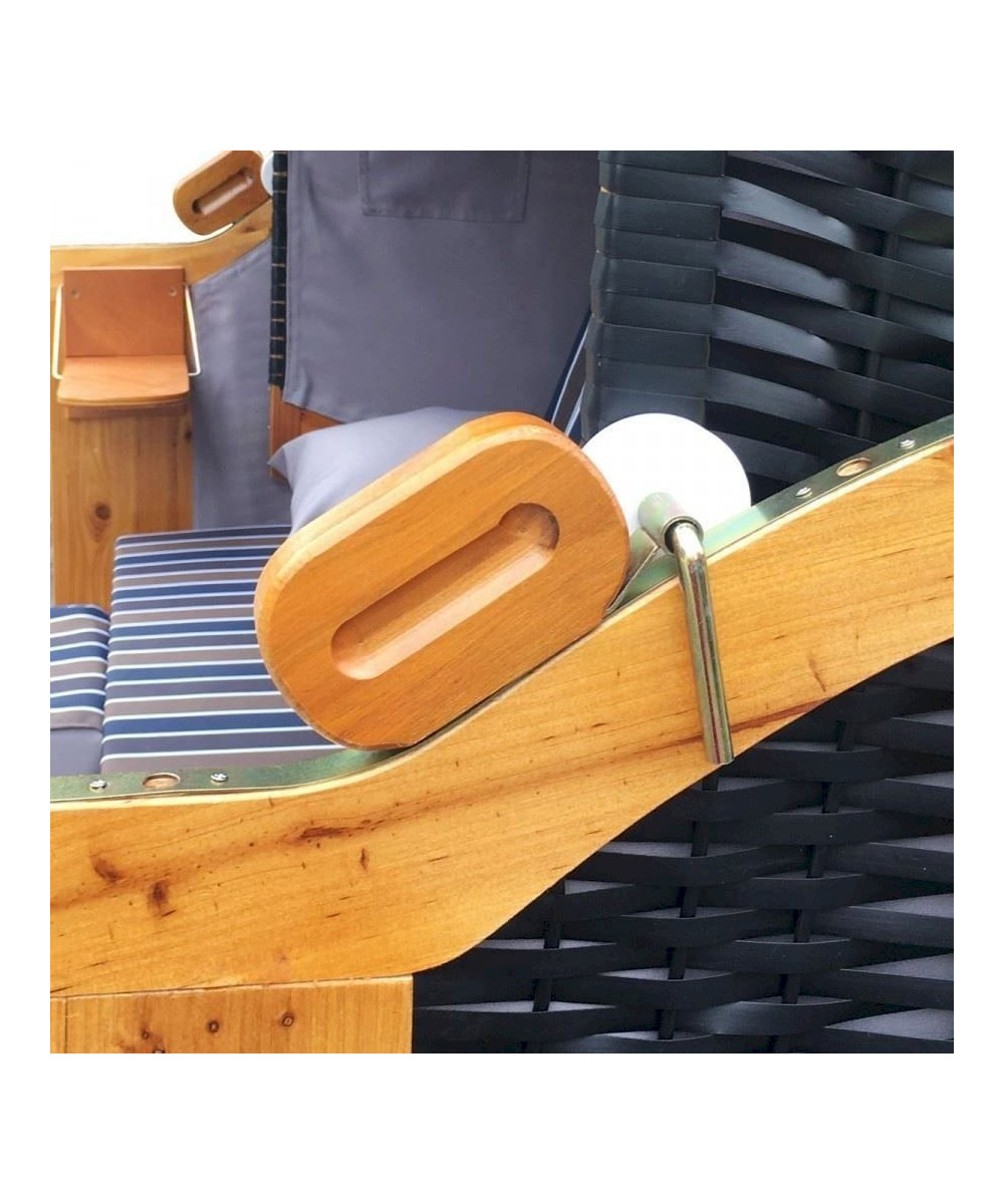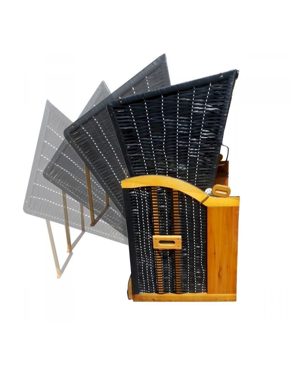 - Unser Strandkorb ist ein Volllieger-Strandkorb mit verstellbarer Rückenlehne, die in 4 Positionen auf 170° schwenk- und arretierbar ist.